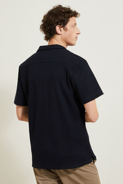 Oubliez la veste de costume par-dessus la chemisette ! Ce haut se porte seul ou ouvert par-dessus un tee-shirt homme uni ou à motifs, mais ne peut s'accorder avec un costume. De même qu'il est de mauvais goût de l'accessoiriser avec une cravate ou un nœud papillon.