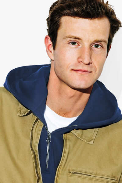 Le sweat à capuche s’intègre également dans une tenue formelle. Sur une chemise blanche, avec ou sans cravate, sous un blazer, le sweat apporte une touche tendance. Veillez à choisir dans ce cas un sweatshirt plus foncé que la chemise, mais plus clair que la veste.