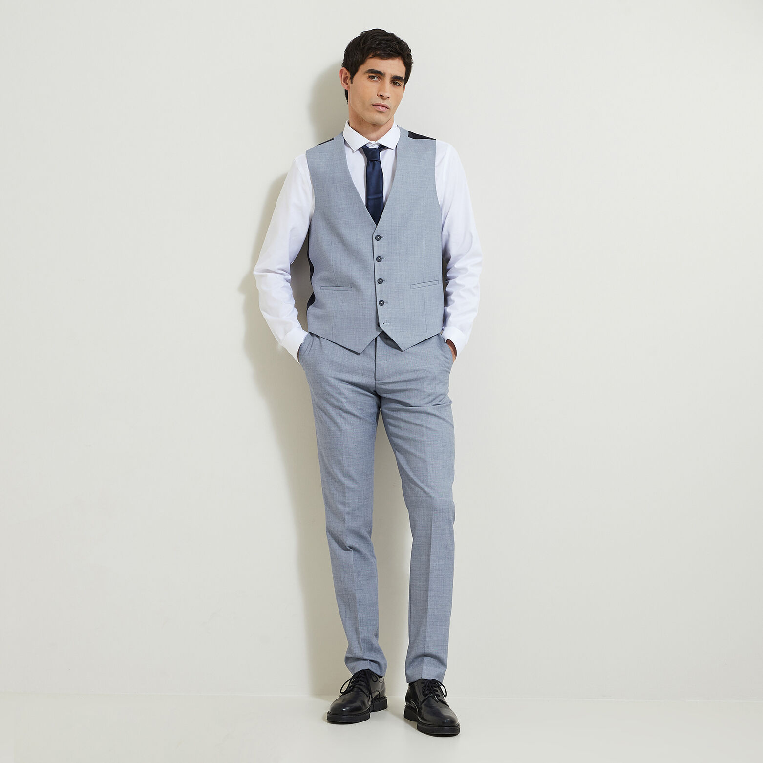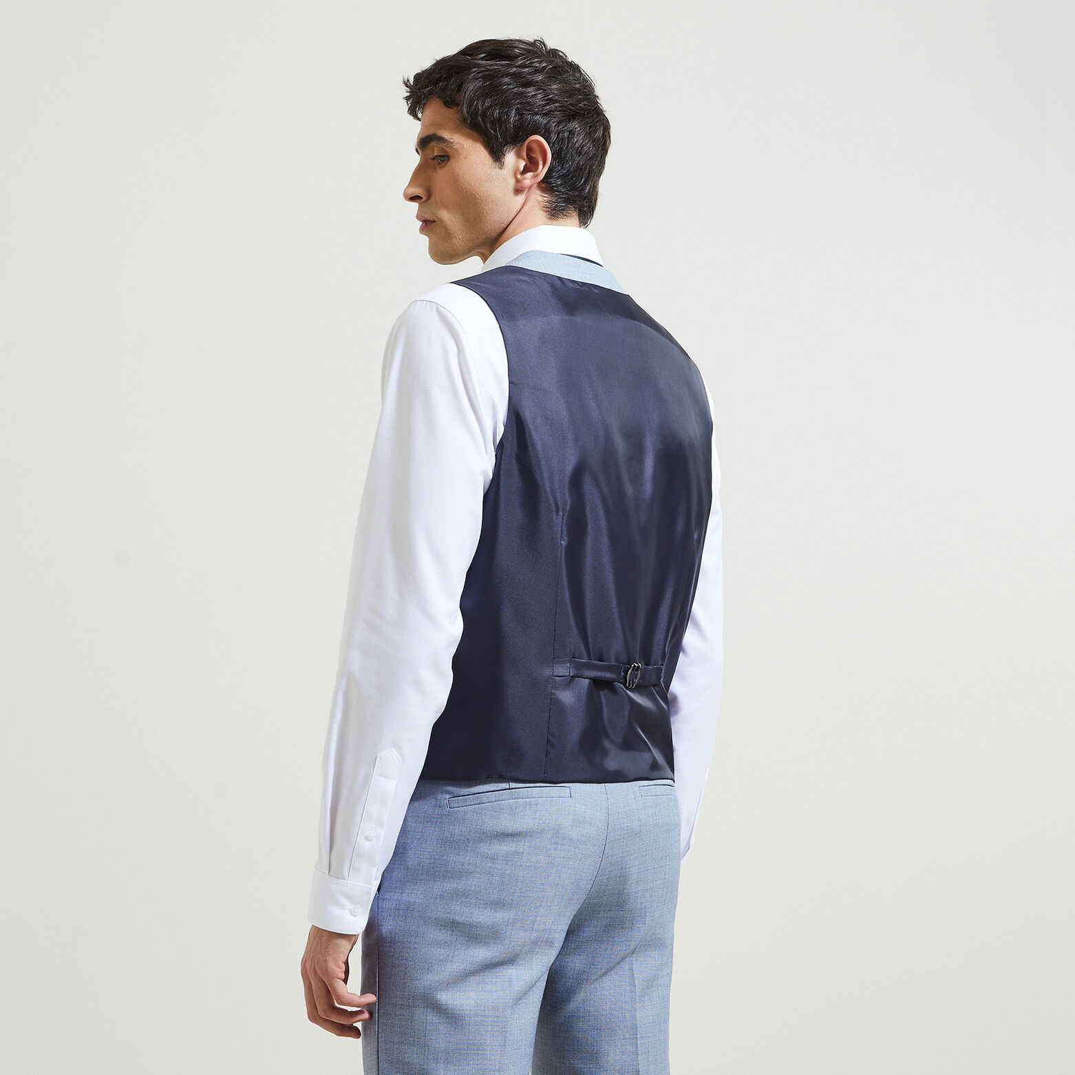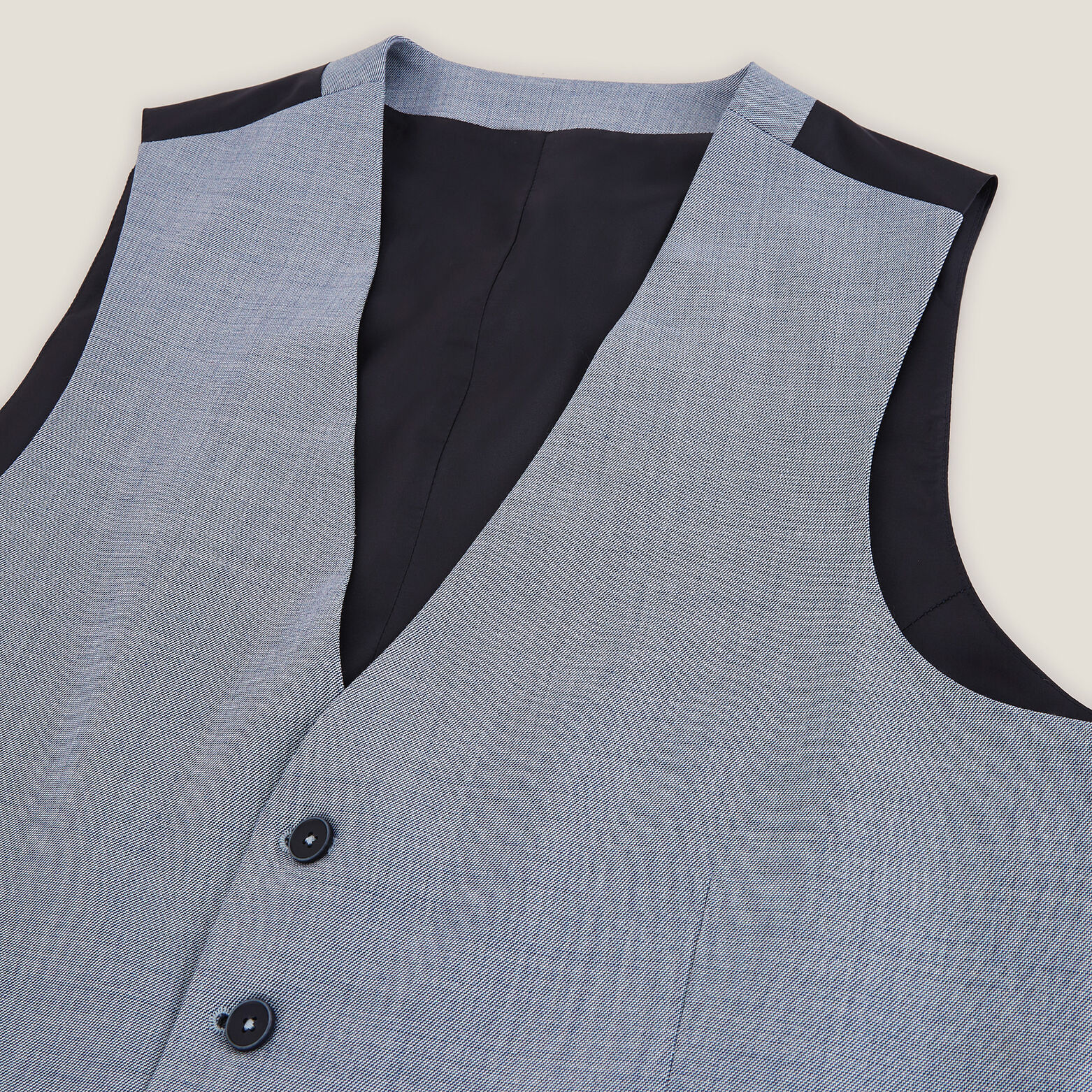 Confectionné dans un très beau tissu bi-ton, deux coloris de fils, ce gilet de costume se porte avec ou sans veste de costume, pour une touche chic quel que soit votre look.