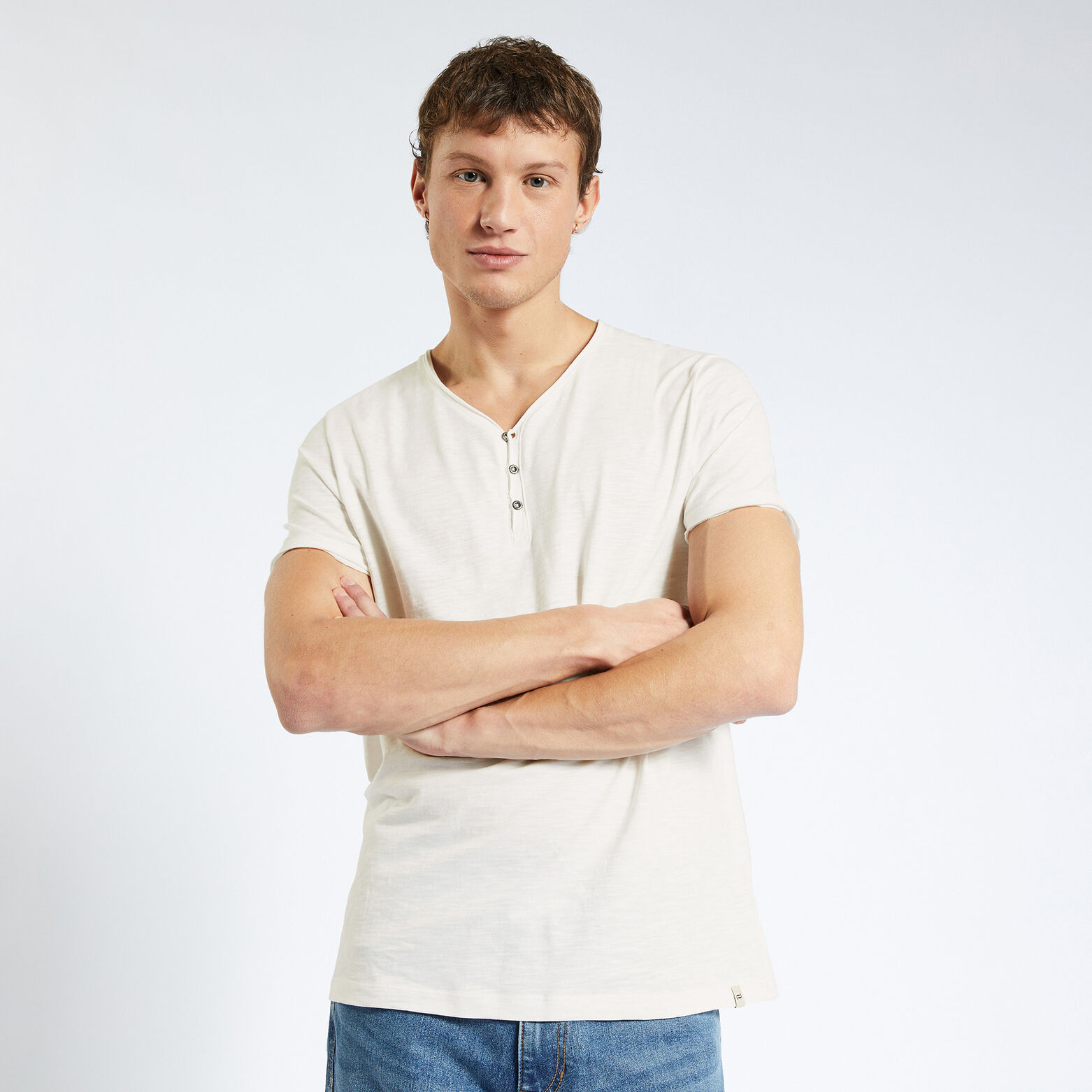 Ce tee-shirt col tunisien offre un style chic et décontracté en toutes circonstances !
