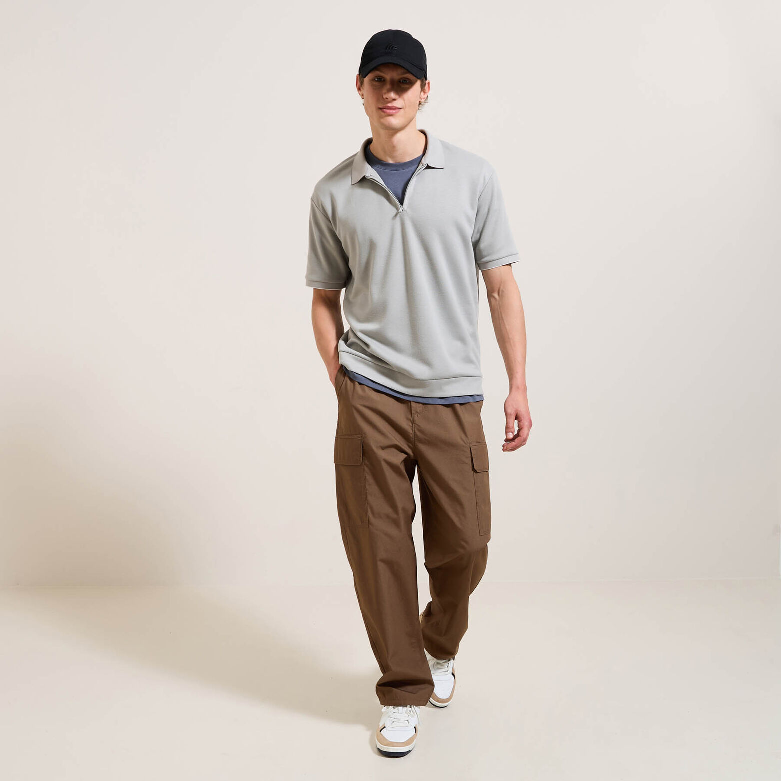 Conçu en tissu technique et confortable, ce pantalon cargo dispose de multiples poches pour vos essentiels. Il vous accompagne avec élégance et fonctionnalité en toutes circonstances.