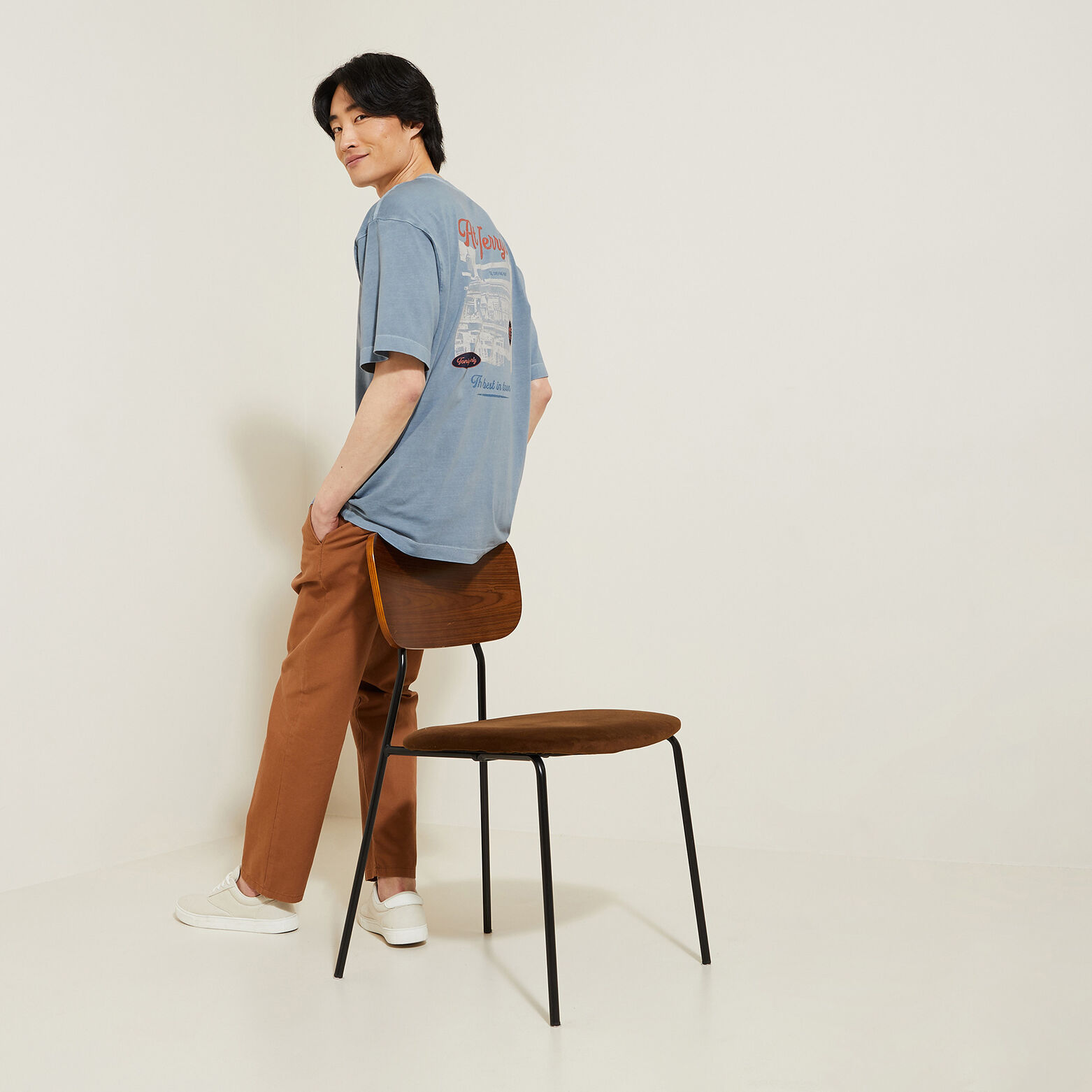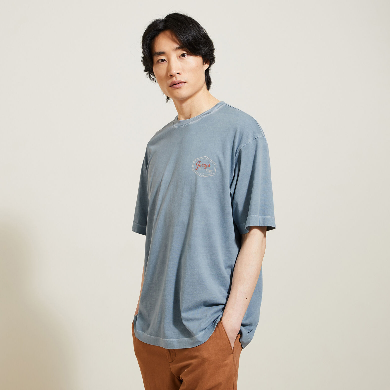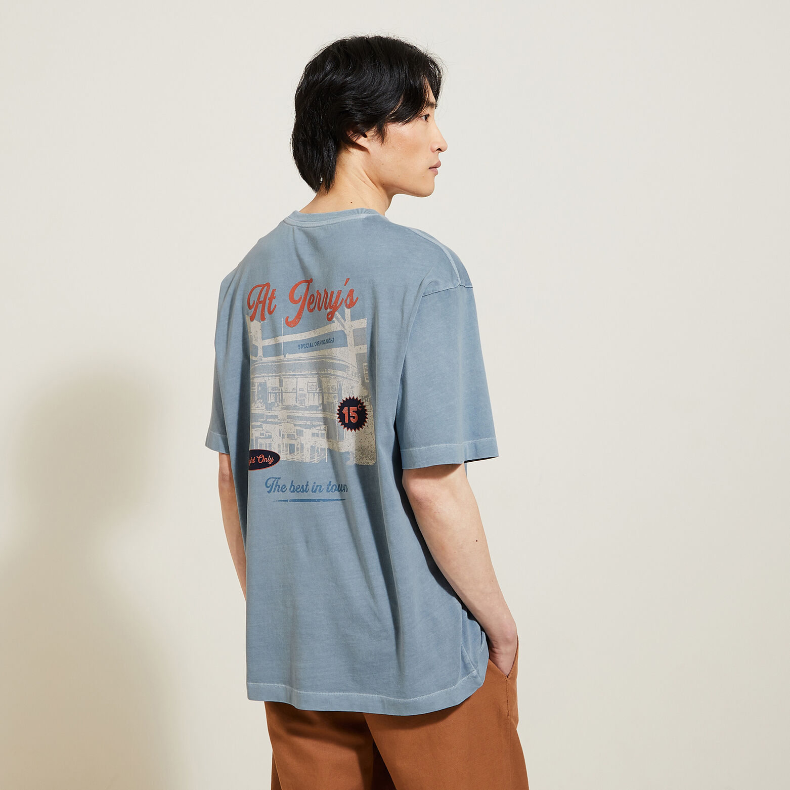 Ce tee shirt à manches courtes, imprimé fantaisie devant et dos, s'associe facilement à tous les styles. Le tissu garment dyed donne un effet unique sur chaque pièce.