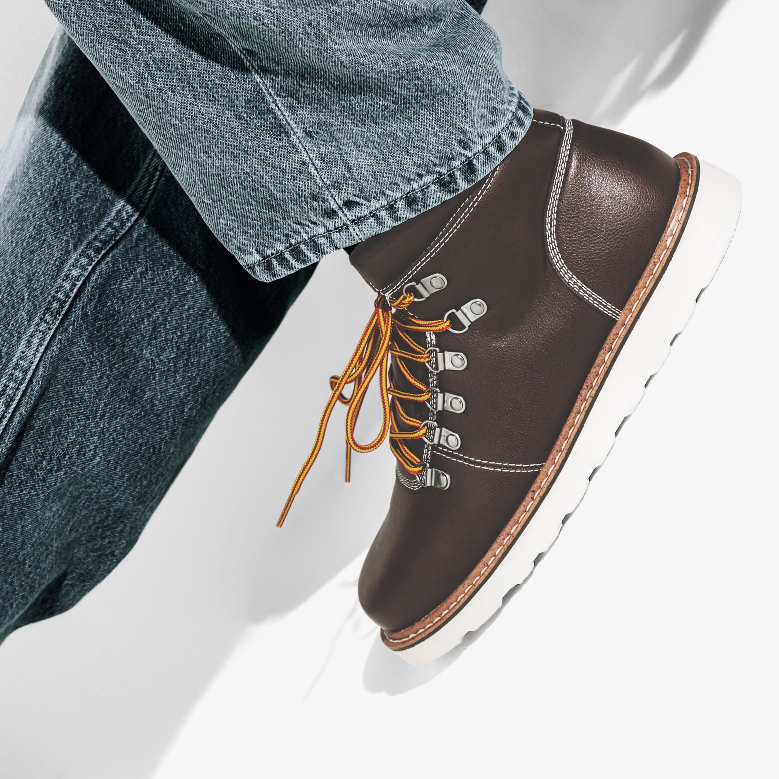Adoptez un look baroudeur affirmé avec ces boots montantes à lacets. Inspirées des chaussures de randonnée, elles affichent une semelle épaisse contrastée pour une allure contemporaine.