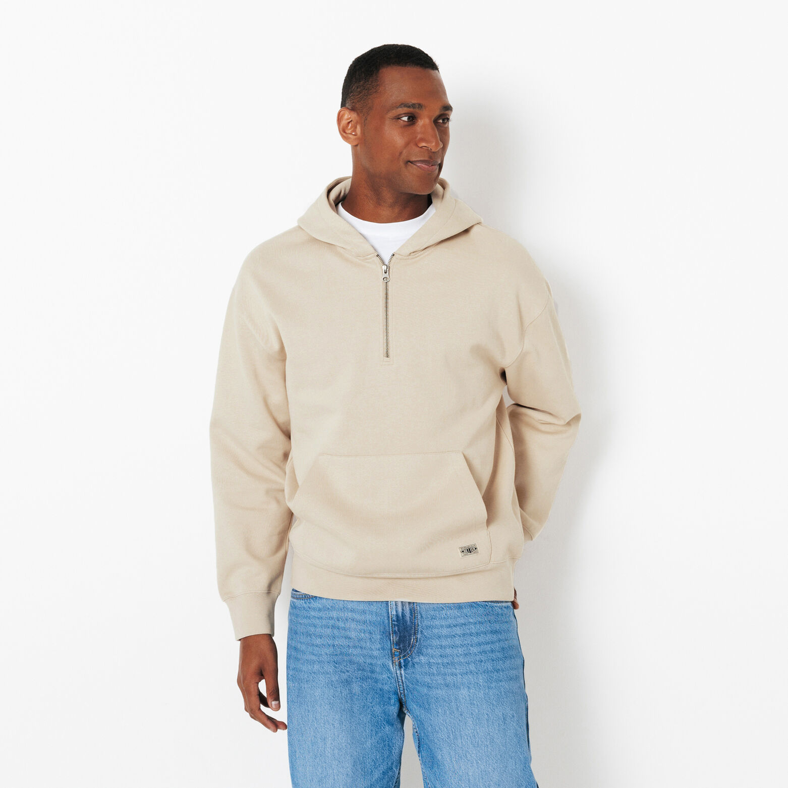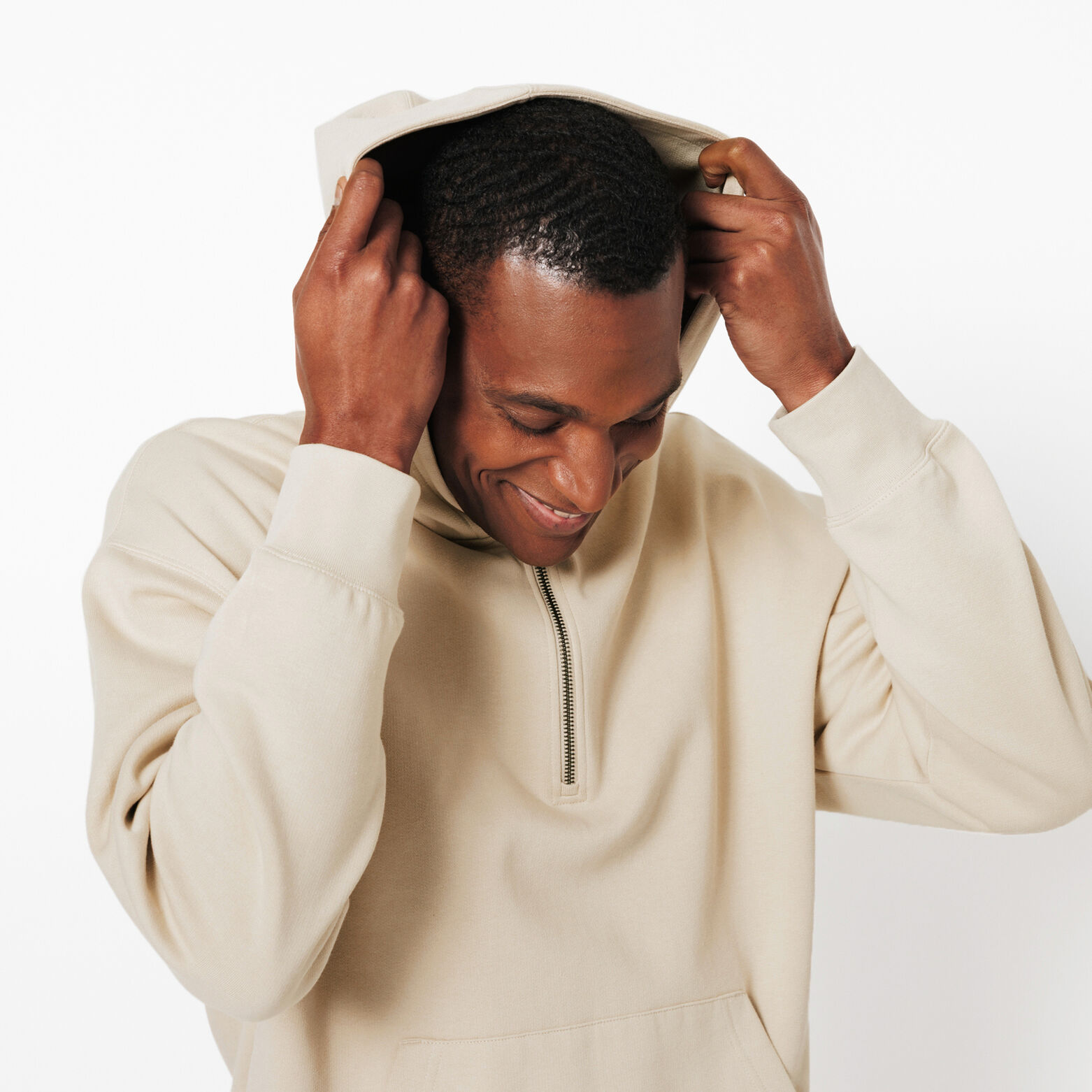 Sweat à capuche col zippé - Ecru