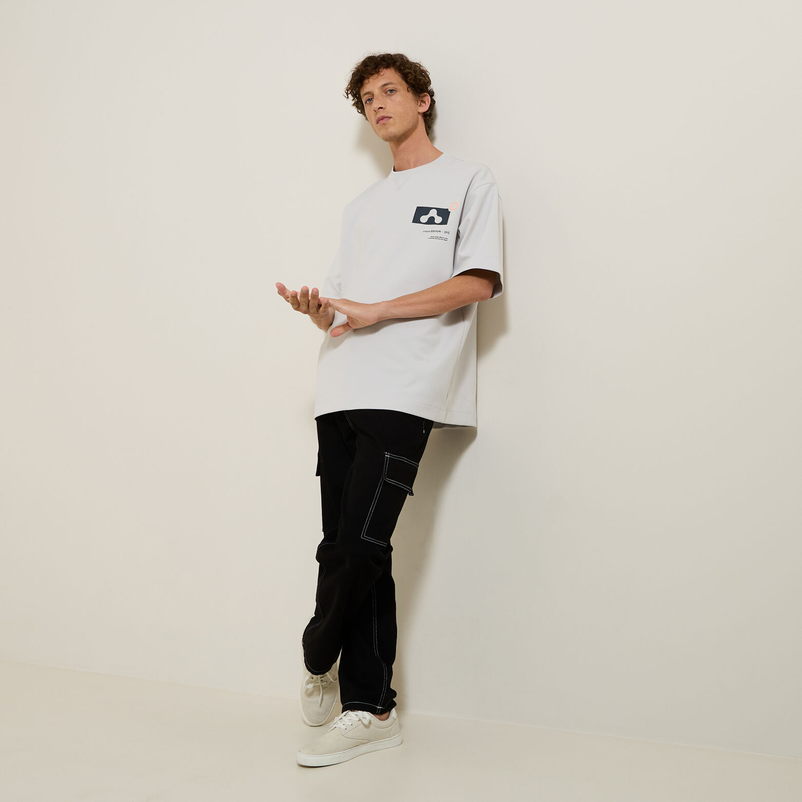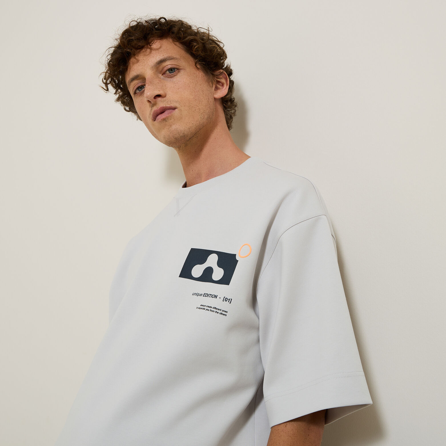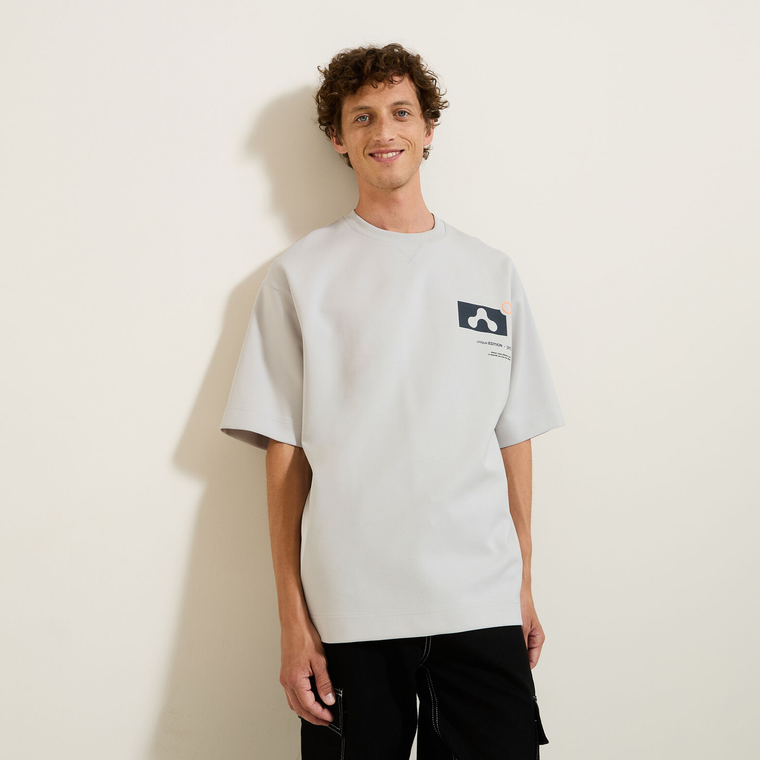 Ce tee-shirt interlock, maille plus épaisse et extensible que le jersey, affiche un imprimé graphique stylé qui vous démarquera.