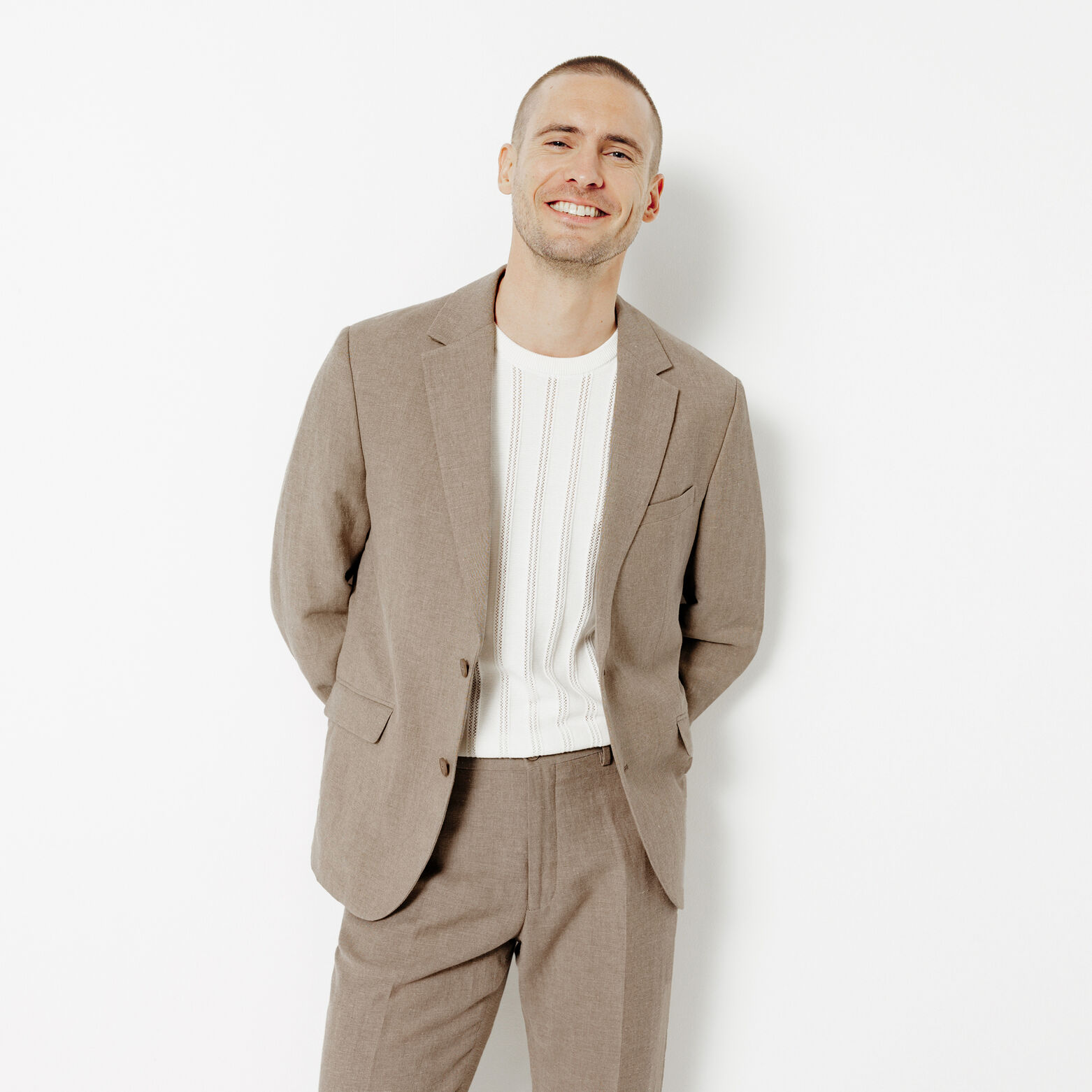 Cette veste de costume contenant du lin est parfaite pour un look élégant et décontracté.