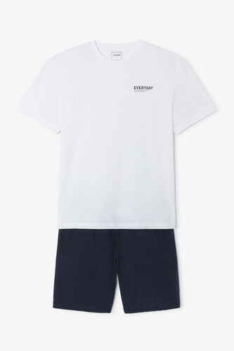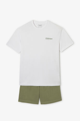 Envie d'un look décontracté même pour dormir ? Cet ensemble pyjama composé d'un t-shirt à manches courtes et d'un short assorti vous assure un style simple et efficace.