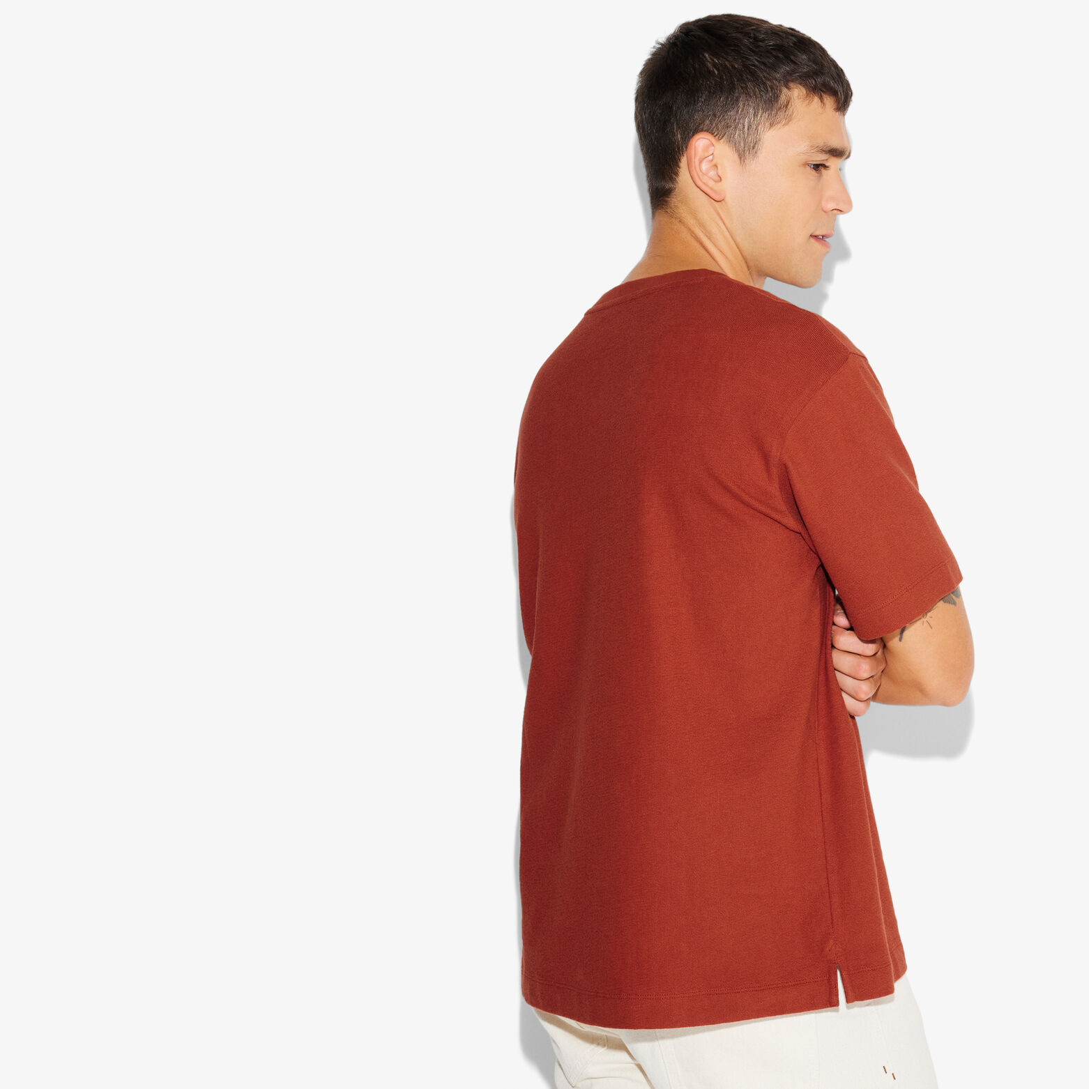 Ce t-shirt à manches courtes est parfait pour un look décontracté et élégant. Associez-le à un pantalon chino beige et à des chaussures bateau pour une tenue décontractée.