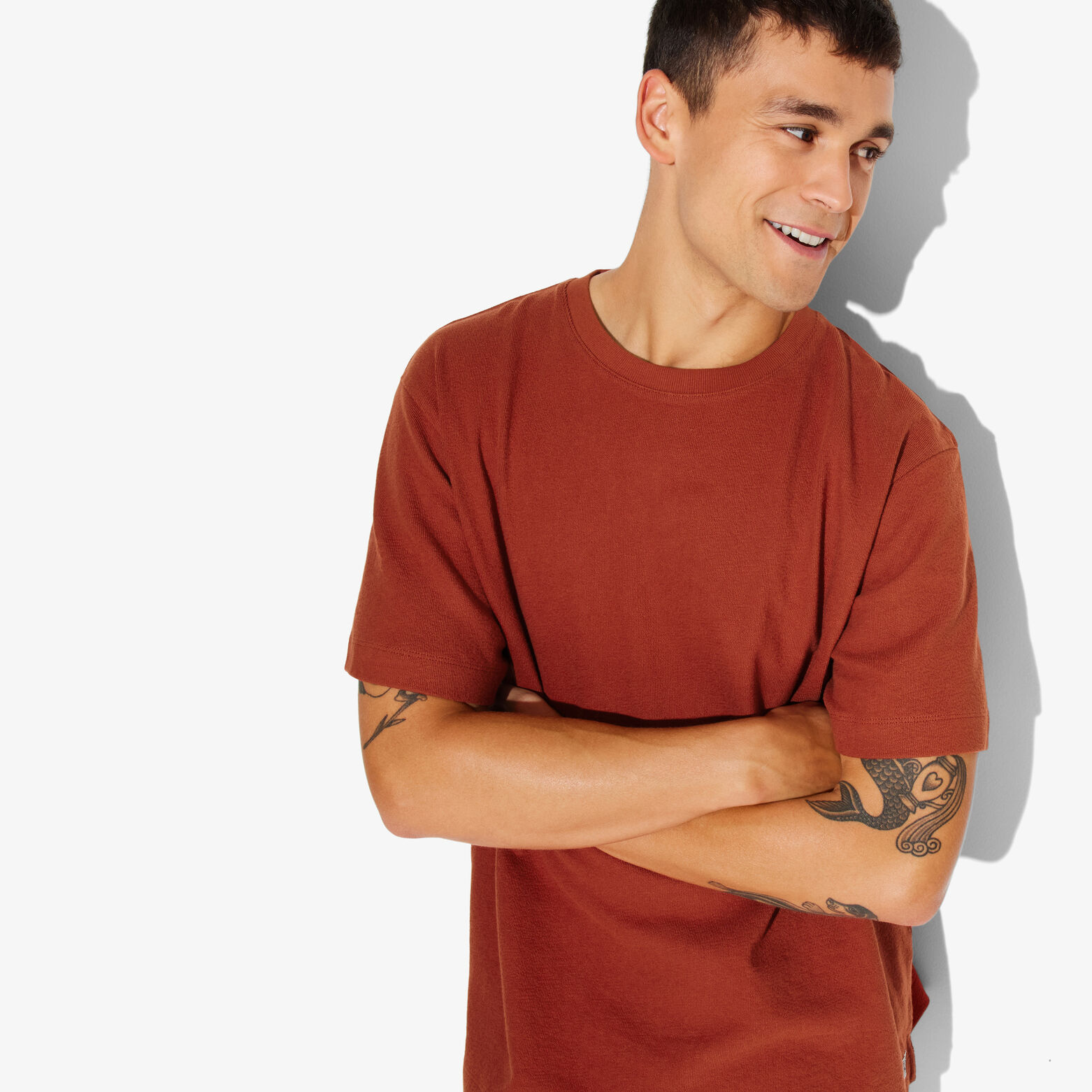 Adoptez un look décontracté et tendance avec ce tee-shirt en matière éponge à col rond, idéal pour un look décontracté du quotidien.