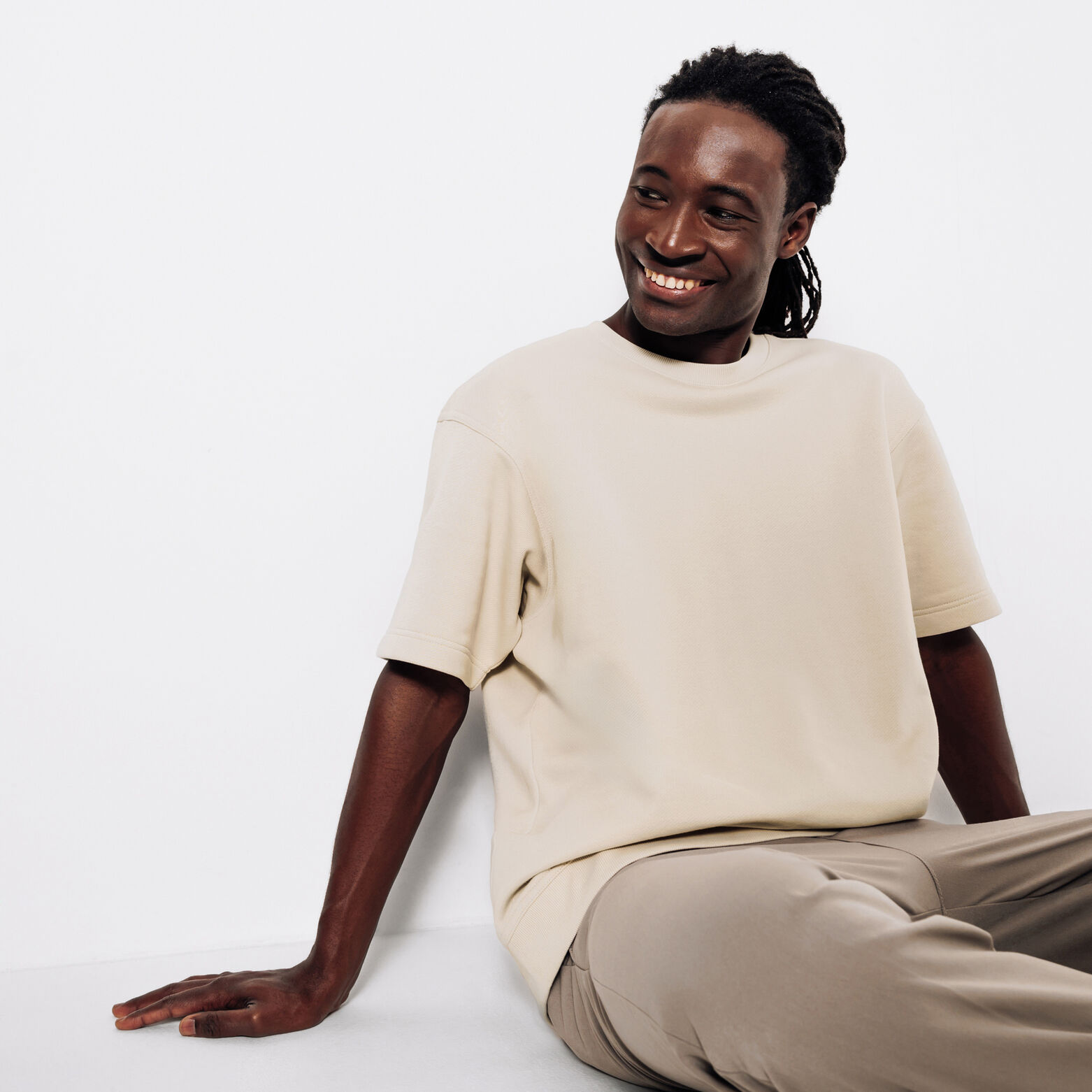 Ce t-shirt en matière French Terry est un indispensable du quotidien, offrant une coupe relax et un col rond intemporel. Avec sa texture et son épaisseur, il se porte comme un sweat à manches courtes, alliant confort et style décontracté.