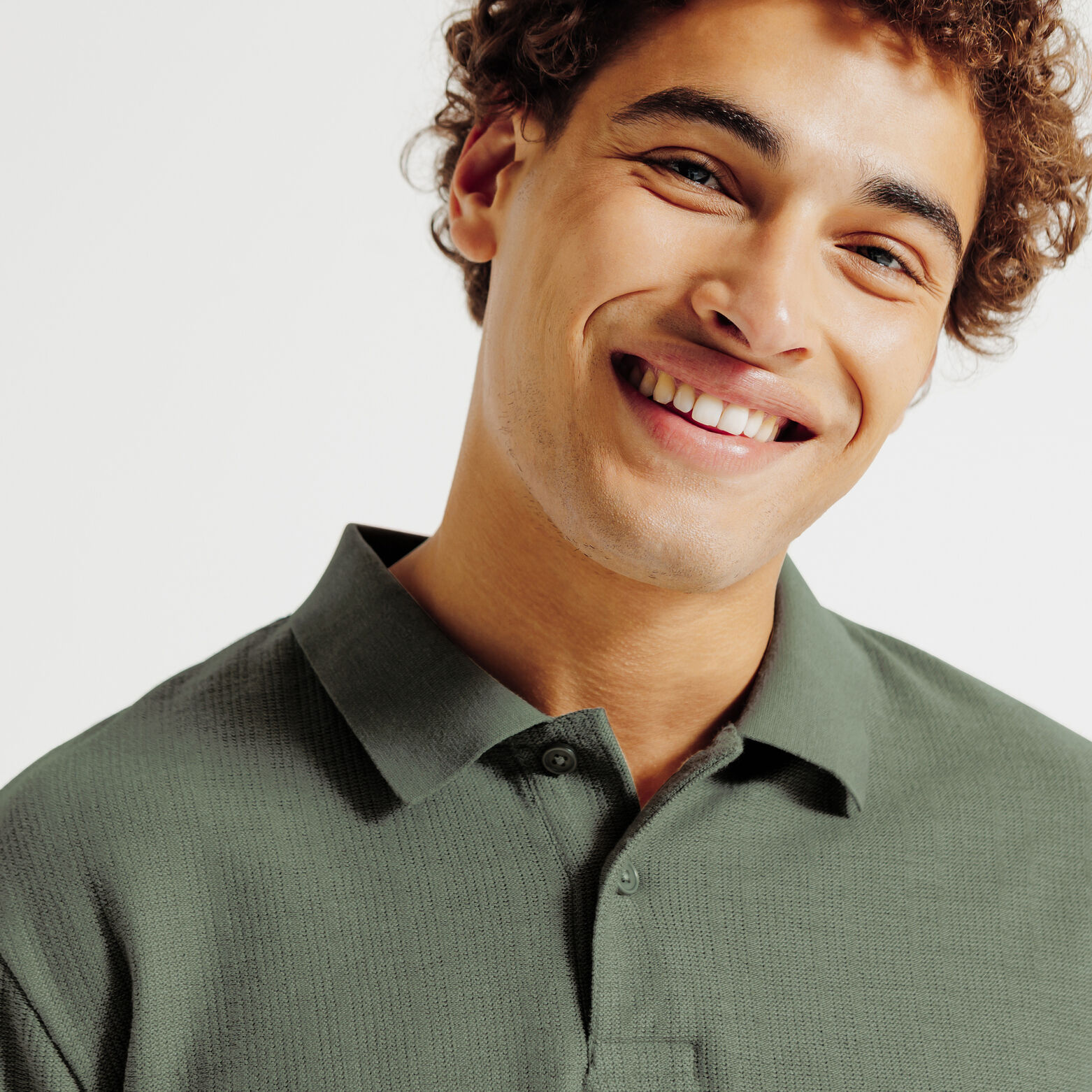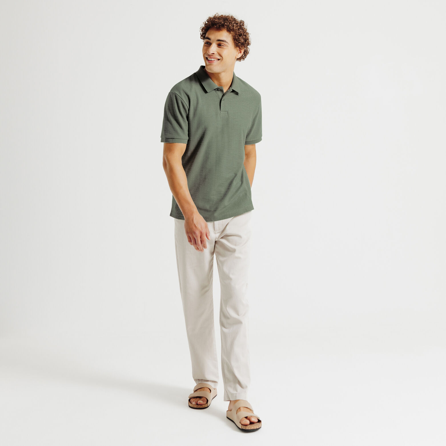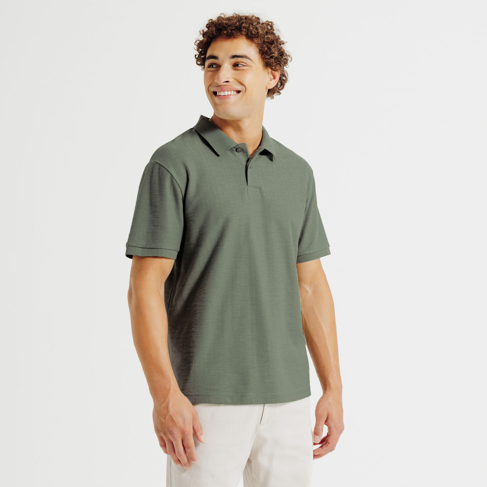 Polo manches courtes texturé - Vert kaki