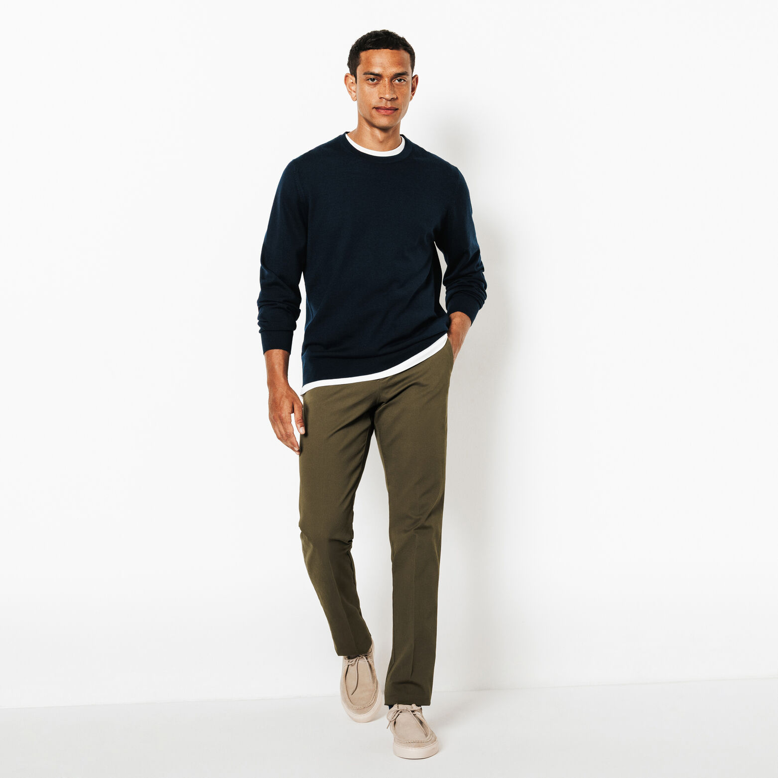 Découvrez le pantalon chino straight, un pantalon de ville à la fois souple et agréable à porter. Sa coupe droite vous offre une silhouette moderne et décontractée.