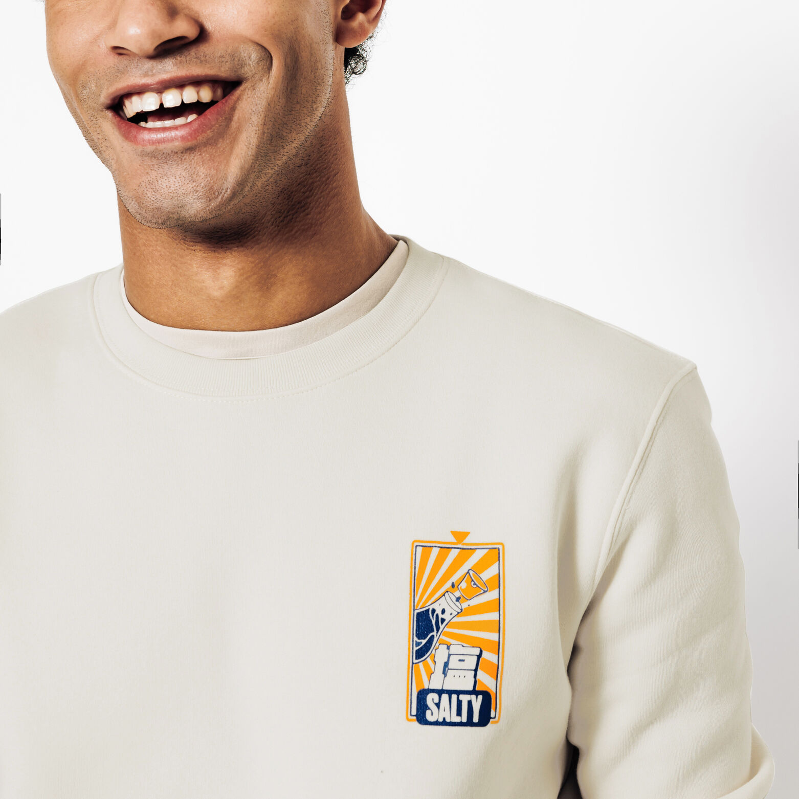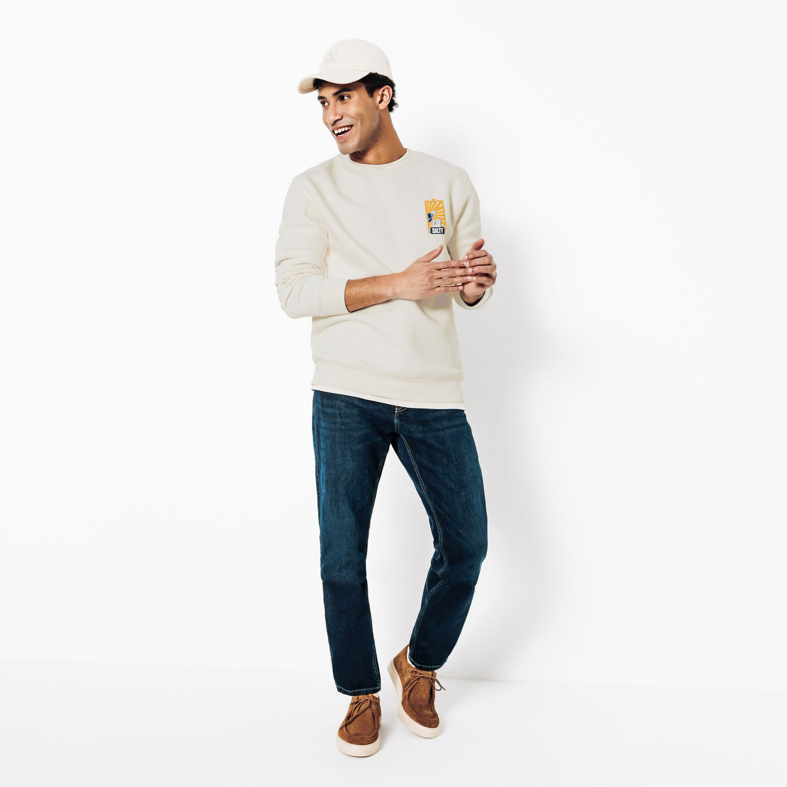 Ce sweat imprimé s'associe parfaitement avec un jean brut ou un chino pour un look décontracté. Pour une allure plus habillée, on peut le porter sous une veste en jean ou un bomber.