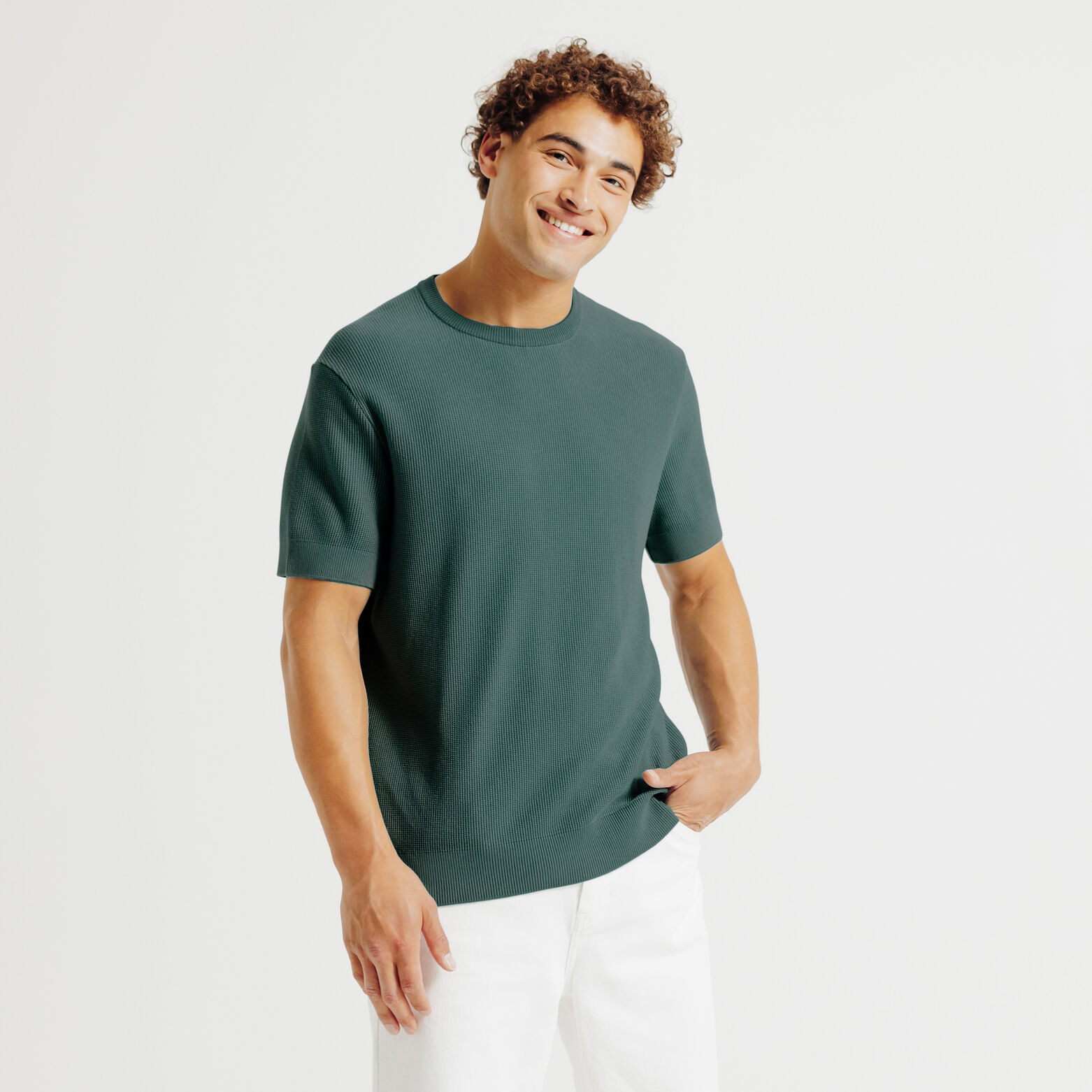 Craquez pour ce tee shirt en maille jeux de points fantaisie, un basique revisité pour un look tendance. Sa maille piquée texturée et ses finitions soignées en font une pièce agréable à porter.