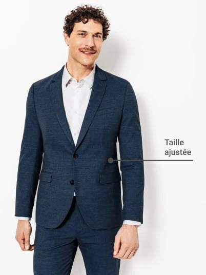 Debout et veste boutonnée, le col doit épouser à la perfection votre nuque. S’il est possible de glisser un doigt entre le col et votre cou, la veste est donc trop grande. Dans le cas où un pli horizontal se forme sous le col, la veste est alors trop petite.