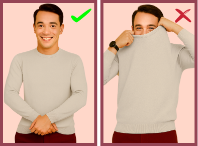 Pour garantir la longévité de votre pull, il est important de le retirer en le remontant par le bas, et surtout pas en tirant sur le col.