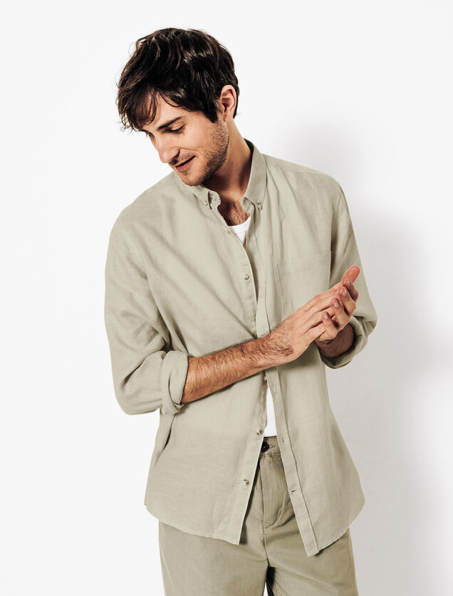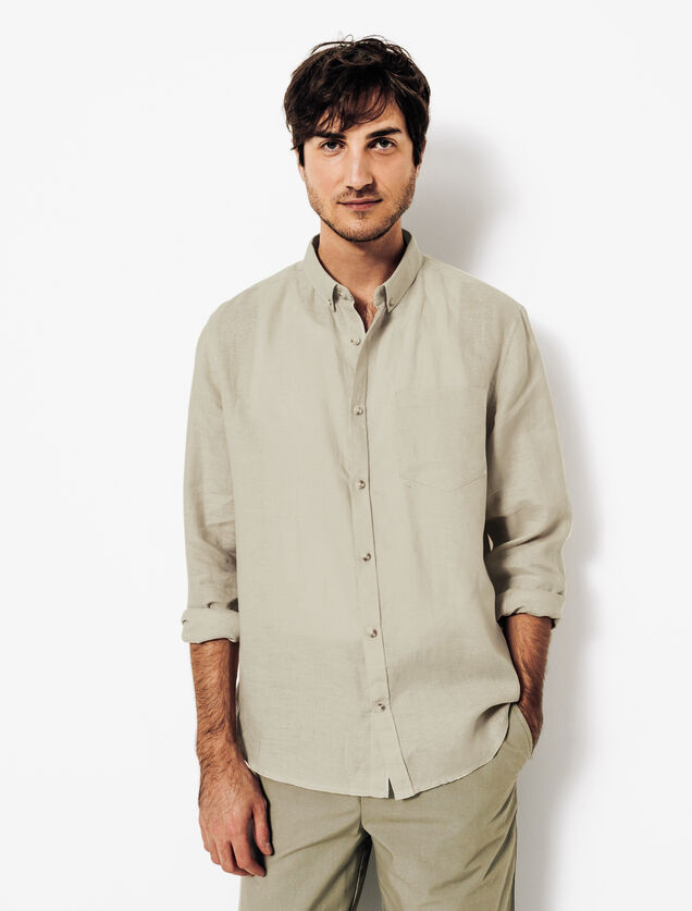 Chemise en lin regular col boutonné