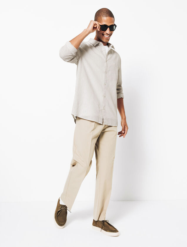 Selon les occasions et les saisons, associez votre chemise avec un pantalon chino pour un esprit casual chic, accompagné d’une paire de baskets blanches ou de boots en daim pour rester dans la tendance. Si vous recherchez une tenue plus formelle et toujours impeccable, mariez-la à un pantalon de costume et complétez le look avec des derbies élégantes ou des richelieus classiques.