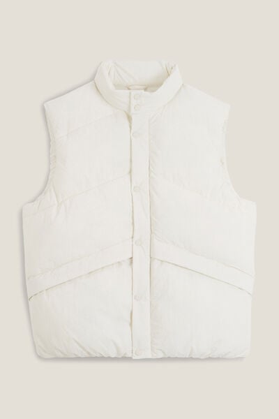 Si vous assumez une allure casual chic branchée, vous porterez facilement votre doudoune matelassée sans manches pour aller au bureau, sortir entre amis ou pour vous promener en ville. Portez-la par-dessus une chemise, un pull léger, ou plus épais en fonction de la météo, avec un pantalon chino et une paire de bottines ou de chaussures de ville. Privilégiez un modèle dans un coloris neutre et uni comme le bleu marine ou encore le beige.