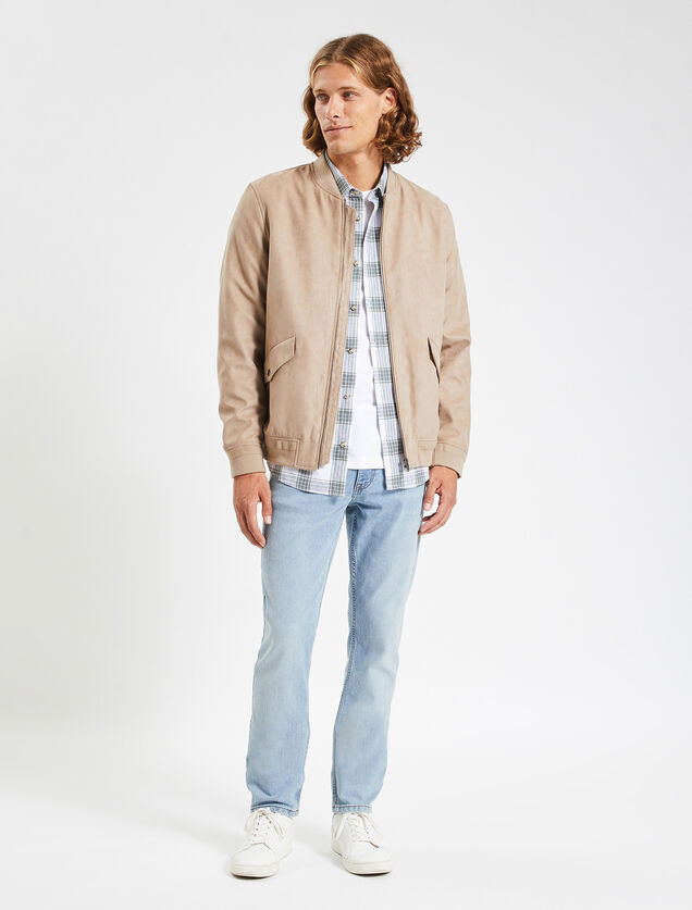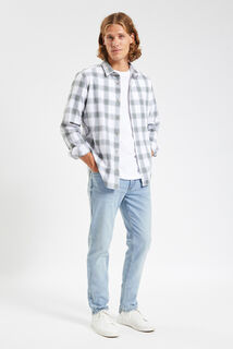 Le jean slim homme, près du corps, mais pas autant que le skinny, structure et élance la silhouette. Brut, bleu clair, délavé, gris… il se décline en plusieurs versions pour répondre à toutes les envies et créer des tenues à la fois décontractées ou plus élégantes.