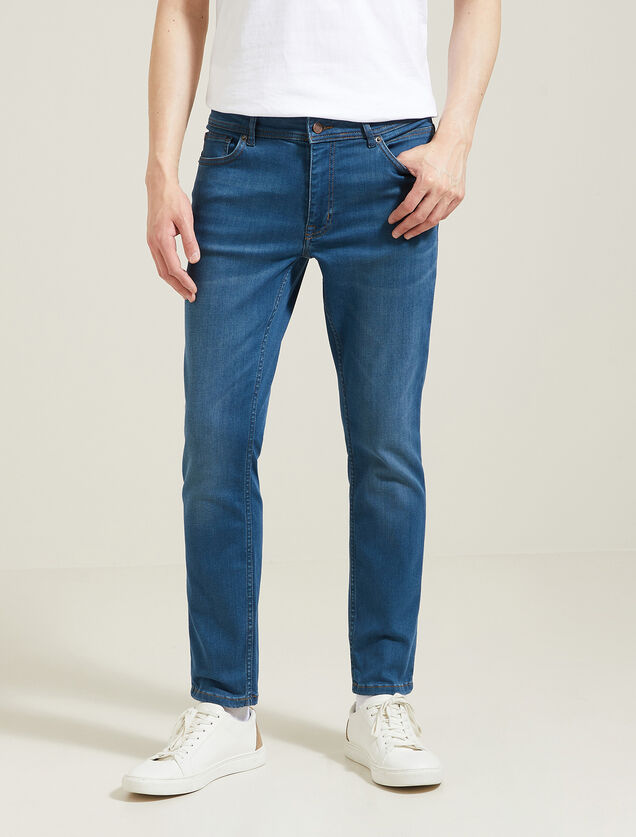 Le jean slim homme, près du corps, mais pas autant que le skinny, structure et élance la silhouette. Brut, bleu clair, délavé, gris… il se décline en plusieurs versions pour répondre à toutes les envies et créer des tenues à la fois décontractées ou plus élégantes.