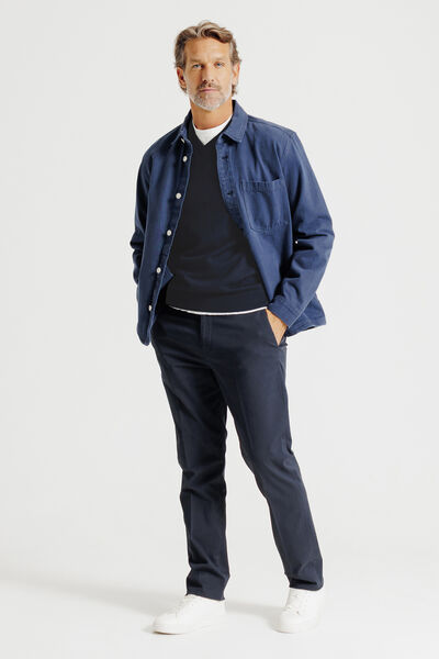 Si vous adoptez un style casual urbain, enfilez votre pull merinos col V avec un jean et une paire de boots. Terminez votre tenue avec un blouson en cuir ou bien des vestes style bombers ou effet denim. Pour une tenue plus formelle et très élégante, troquez votre blouson contre une veste blazer.