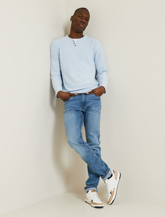 Le pull col rond, quant à lui, peut se porter avec tout. Associez-le à une chemise pour une tenue classique ou avec un blouson pour homme pour un look plus casual.