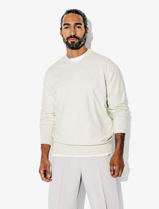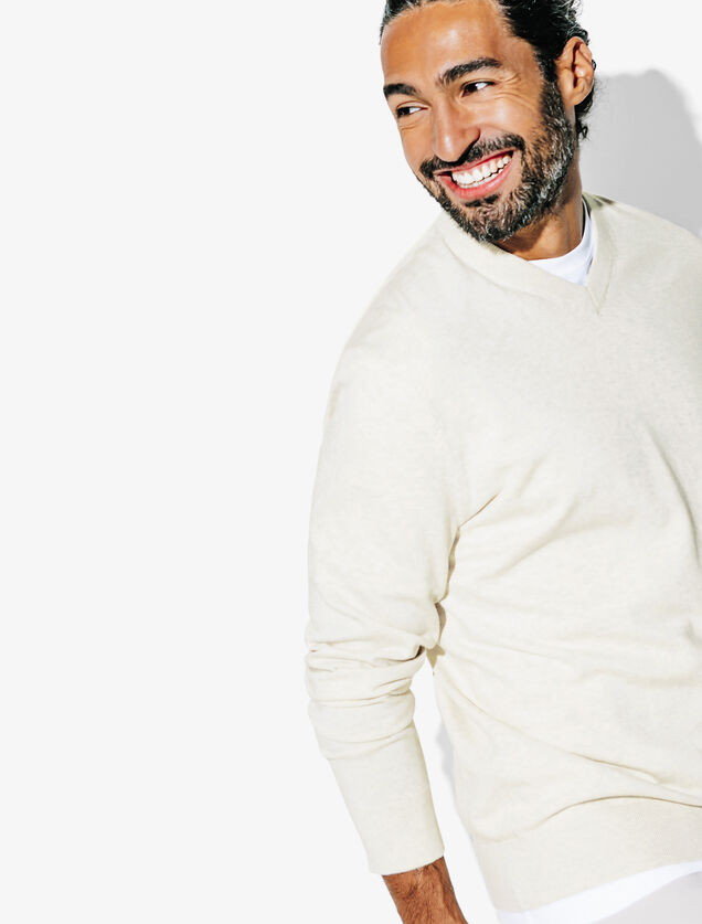 Le pull col V homme a tendance à affiner la silhouette. Vous pouvez le porter sur une chemise, en prenant garde à ce que le col reste bien dans le pull, ou un tee-shirt pour donner davantage de caractère à votre tenue. L’ensemble peut se porter sous un blouson en cuir ou avec une veste seule pour une tenue plus formelle.