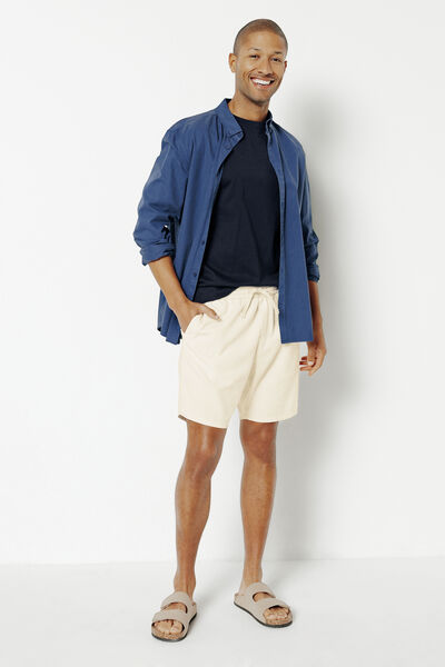 Pour aller travailler, vous rendre à un événement ou une sortie importante, misez sur le pantalon chino ou, à la saison estivale, sur son petit-frère le short chino. À combiner avec une chemise manche courte homme, des mocassins ou des baskets pour une tenue raffinée, il saura faire son effet.