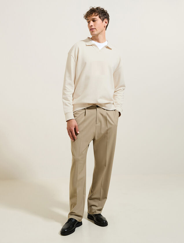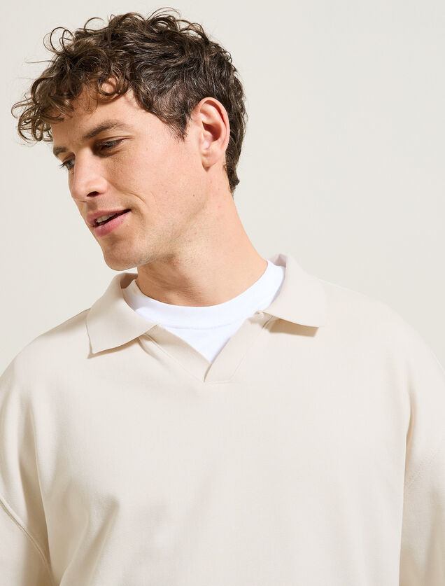 Sous un blouson, une veste ou une doudoune, il vous accompagne aussi lors des journées les plus froides. Vous l’enfilez souvent par-dessus un T-shirt, mais avez-vous déjà pensé à l’associer à une chemise pour un rendu plus structuré ? Le col légèrement visible donne immédiatement un aspect plus travaillé. En bas, optez pour un jean clair ou brut ou un pantalon chino, en coupe slim ou regular, selon votre morphologie.