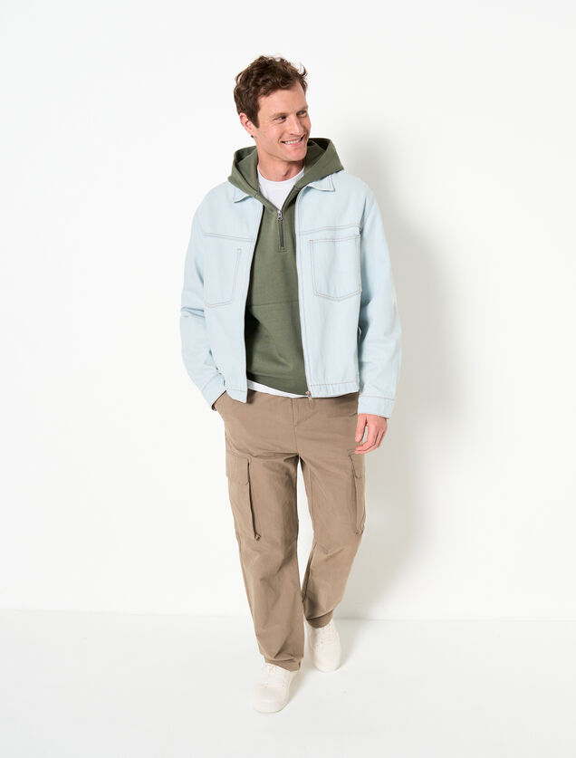 Vous pouvez laisser ressortir la capuche de vos vestes en jean ou bombers pour une touche mode. Avec un jean et une paire de sneakers, votre hoodie apporte la touche finale à un look décontracté et branché. À la recherche d’un style plus élégant ? Optez pour un sweat à capuche zippé, que vous portez ouvert sur une chemise blanche, avec ou sans cravate, et complétez l’ensemble avec un blazer. Ce contraste casse les codes et modernise une tenue formelle tout en conservant une structure énergique. Pour l’harmonie des couleurs, choisissez un sweat plus foncé que la chemise, mais plus clair que la veste. Privilégiez un hoodie à la matière lisse et à la capuche discrète pour un tombé net sous la veste.