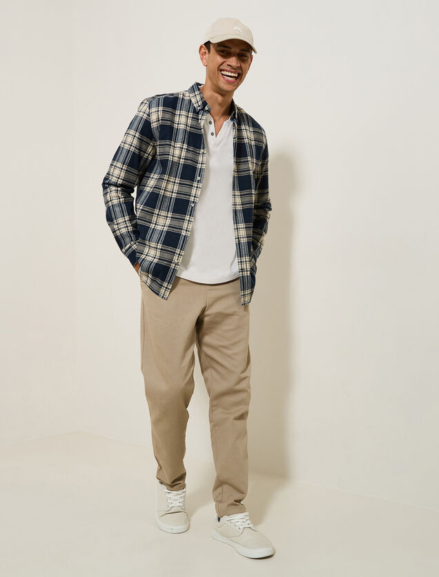 Un message à faire passer ? N’hésitez plus, choisissez un tee-shirt imprimé avec du texte. À porter sous une chemise homme en jean par exemple ou une veste, il accentue votre côté jeune et dynamique. Terminez votre tenue avec une paire de sneakers blanches, indémodables.