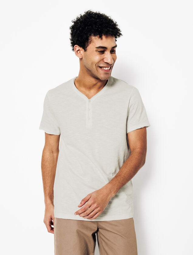 Tee shirt col tunisien matière flammée