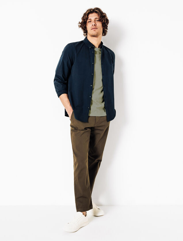Un message à faire passer ? N’hésitez plus, choisissez un tee-shirt imprimé avec du texte. À porter sous une chemise homme en jean par exemple ou une veste, il accentue votre côté jeune et dynamique. Terminez votre tenue avec une paire de sneakers blanches, indémodables.