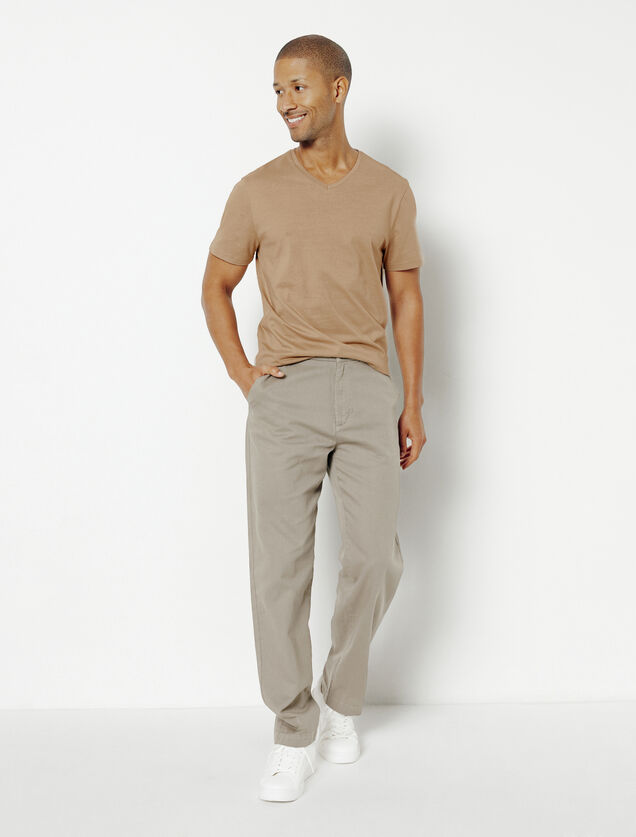 Un message à faire passer ? N’hésitez plus, choisissez un tee-shirt imprimé avec du texte. À porter sous une chemise homme en jean par exemple ou une veste, il accentue votre côté jeune et dynamique. Terminez votre tenue avec une paire de sneakers blanches, indémodables.