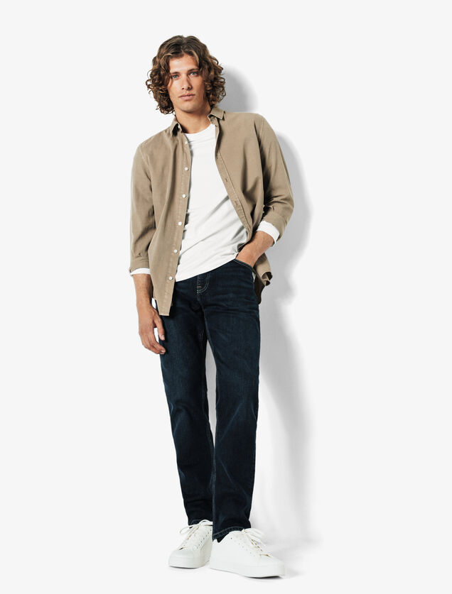 Un message à faire passer ? N’hésitez plus, choisissez un tee-shirt imprimé avec du texte. À porter sous une chemise homme en jean par exemple ou une veste, il accentue votre côté jeune et dynamique. Terminez votre tenue avec une paire de sneakers blanches, indémodables.