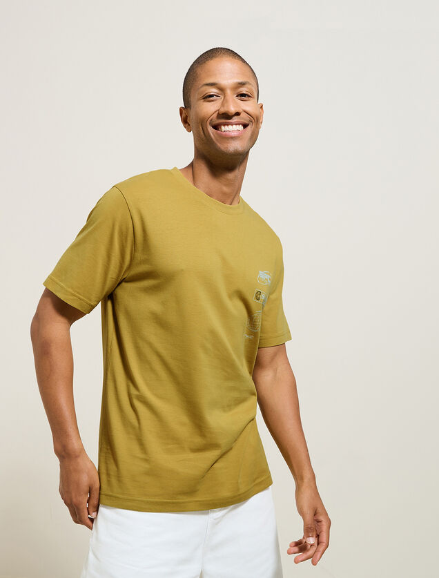 Un message à faire passer ? N’hésitez plus, choisissez un tee-shirt imprimé avec du texte. À porter sous une chemise homme en jean par exemple ou une veste, il accentue votre côté jeune et dynamique. Terminez votre tenue avec une paire de sneakers blanches, indémodables.