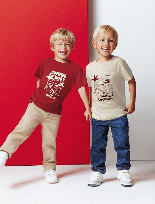 Un message à faire passer ? N’hésitez plus, choisissez un tee-shirt imprimé avec du texte. À porter sous une chemise homme en jean par exemple ou une veste, il accentue votre côté jeune et dynamique. Terminez votre tenue avec une paire de sneakers blanches, indémodables.