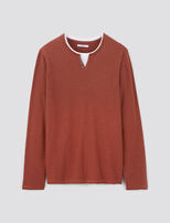 Ce pull à col tunisien doublé de jersey coton se décline dans plusieurs teintes saisonnières ultra tendances.