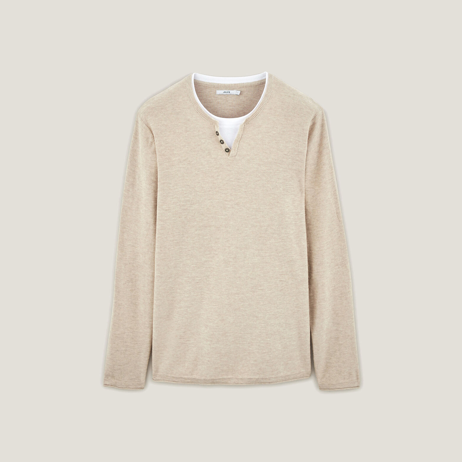 Ce pull col tunisien apporte une élégance toute particulière à votre tenue. La doublure en jersey au col offre un style chic et décontracté.