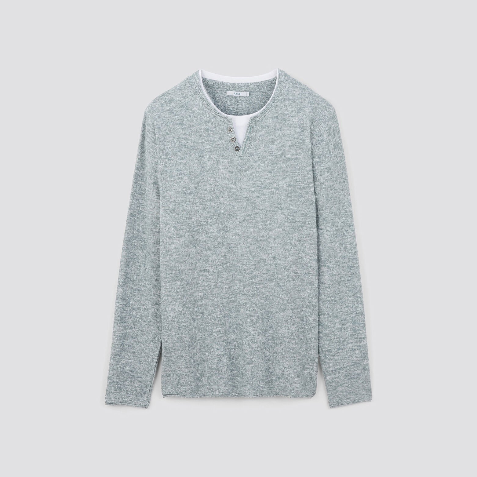 Ce pull à col tunisien doublé de jersey coton se décline dans plusieurs teintes saisonnières ultra tendances.