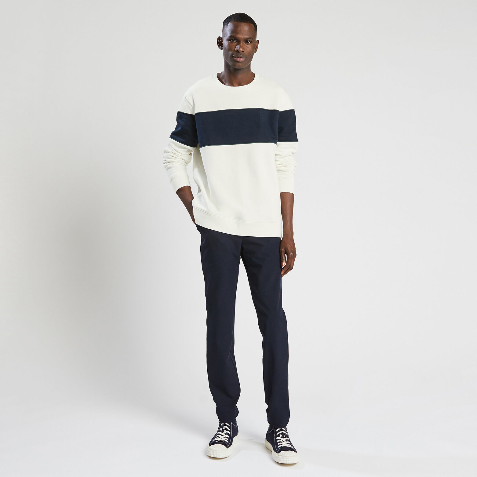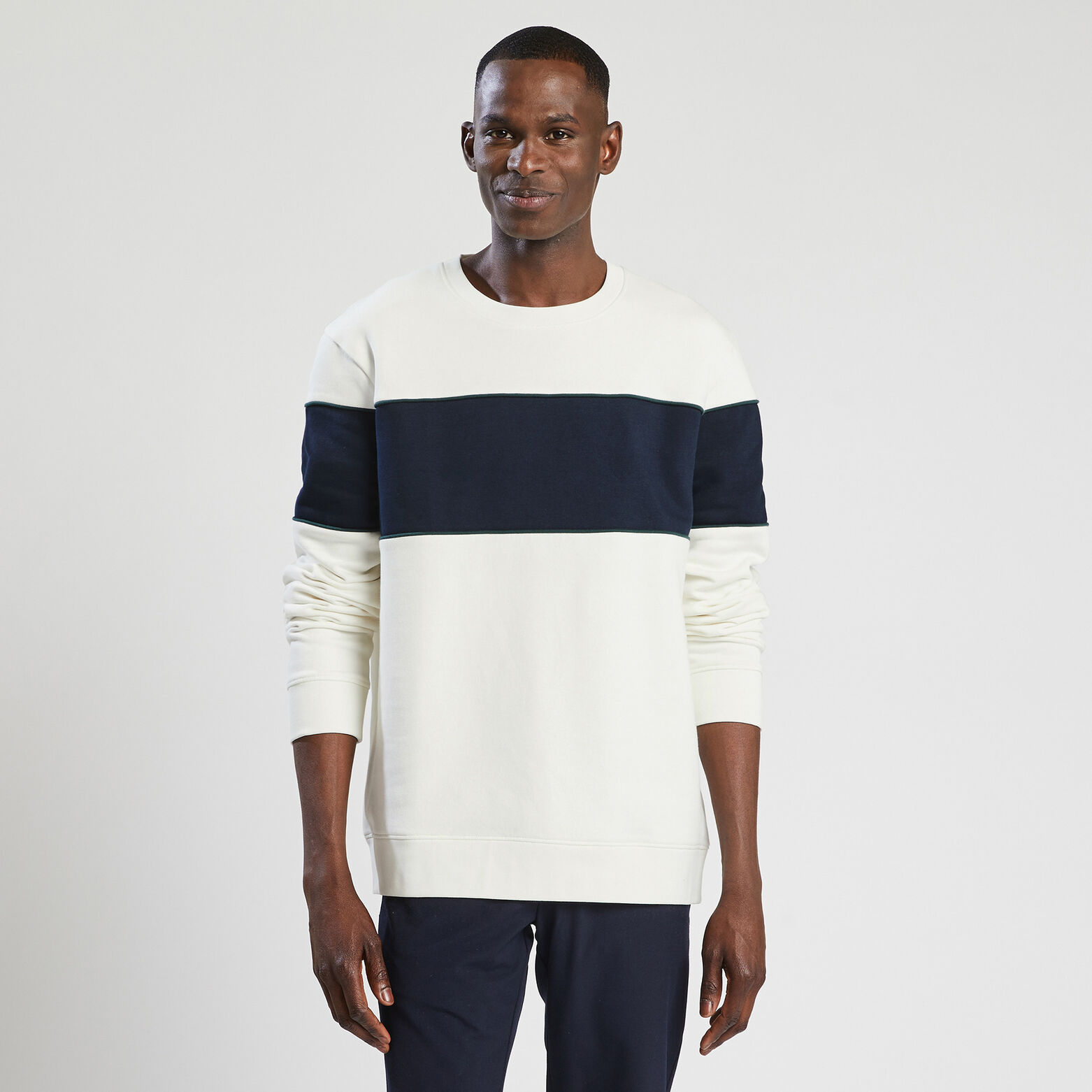 Longtemps cantonné à un registre plutôt décontracté, contrairement au pull plus habillé, le sweat se décline dorénavant dans une multitude de styles : fermeture à zip, capuche, poches sur le devant ou poche sur la poitrine, à vous de choisir le modèle qui vous correspond ! Pièce centrale de votre tenue, le sweat-shirt homme s’associe facilement avec un jean ou un pantalon chino slim pour une silhouette élancée. En haut, portez-le avec une chemise, en laissant dépasser le col pour un rendu plus élégant, ou enfilez-le sur un tee-shirt uni selon vos envies.