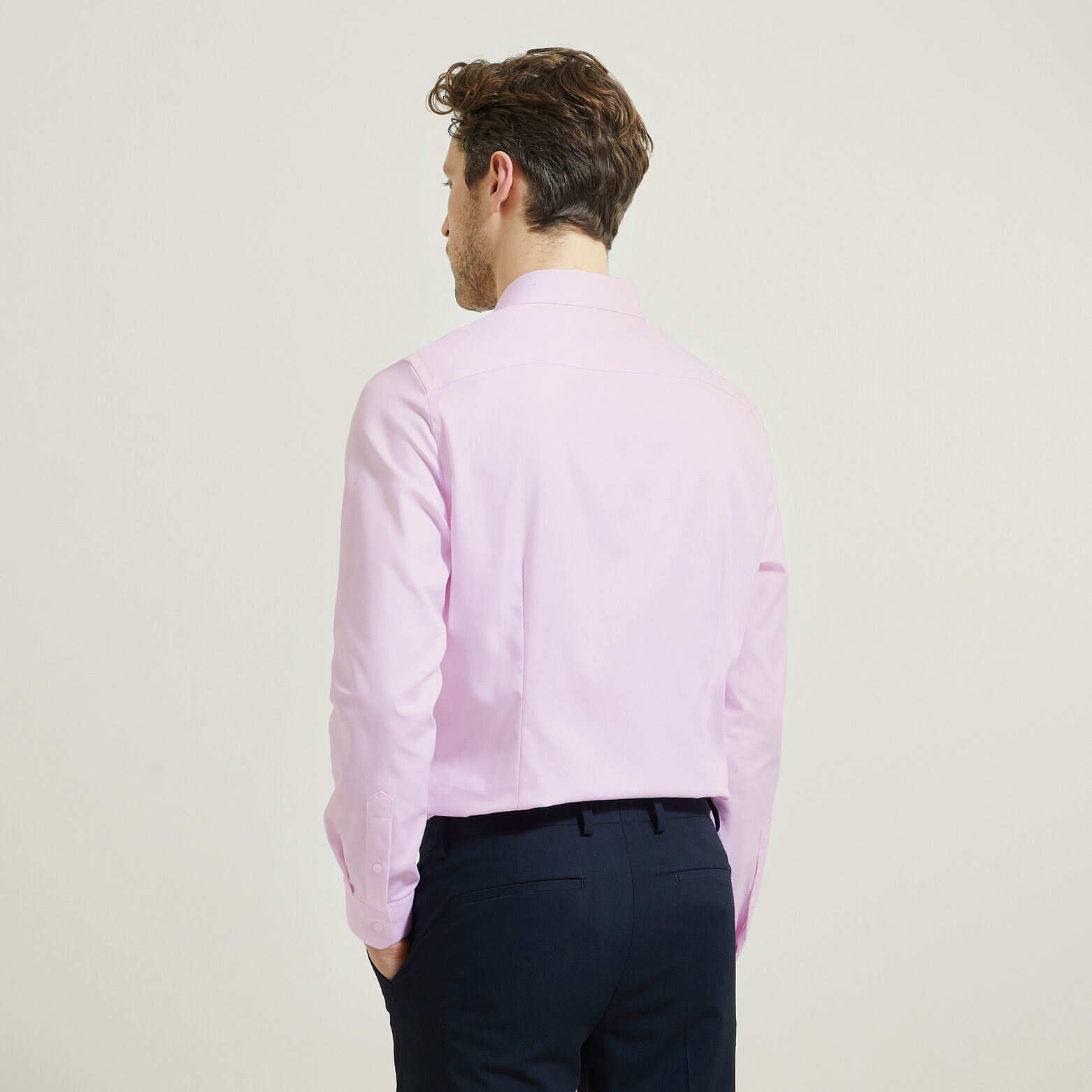 Cette chemise slim sans repassage, en coton, est un bon basique à avoir dans son dressing. Avec un jean, avec un chino, avec un pantalon de costume et même avec un bermuda, elle s'associe avec tout. Pour ajouter une touche plus personnelle, vous pouvez ajouter des boutons de manchette.