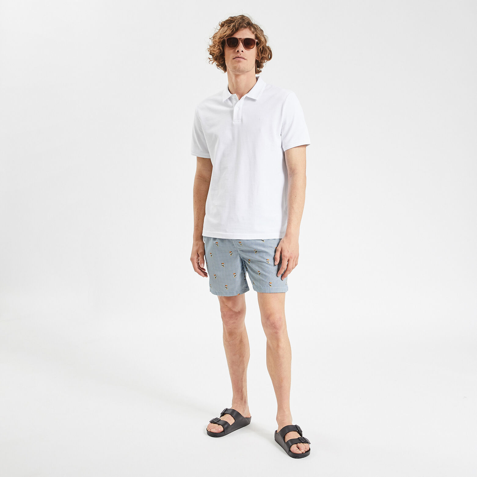 Le maillot de bain short homme s’arrête à mi-cuisse et vous habille avec style, de quoi se pavaner sans gêne au bord de l’eau. Il est donc primordial d’accorder une attention particulière quant au choix du design de votre short de bain. Optez donc pour un maillot coloré, uni ou imprimé, mais surtout, lâchez-vous ! C’est l’été, les vacances, l’occasion idéale pour vous laisser aller dans la fantaisie.