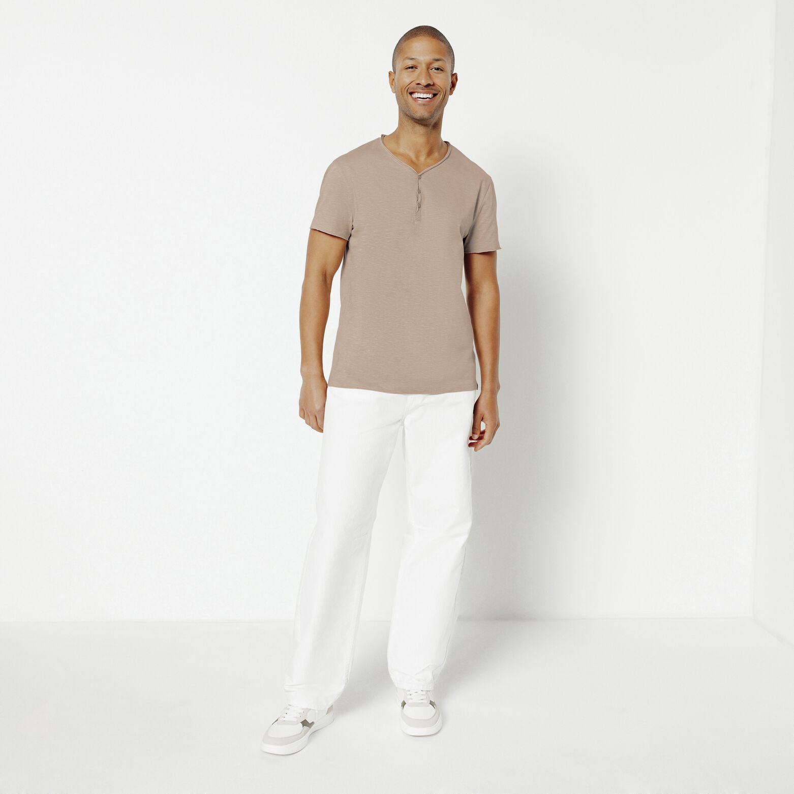 Ce tee-shirt col tunisien offre un style chic et décontracté en toutes circonstances !