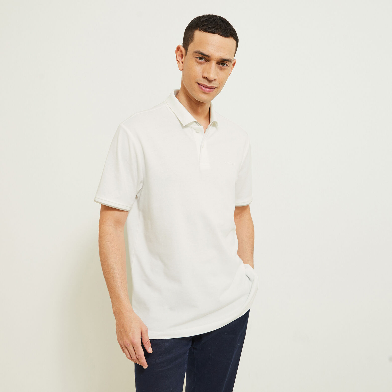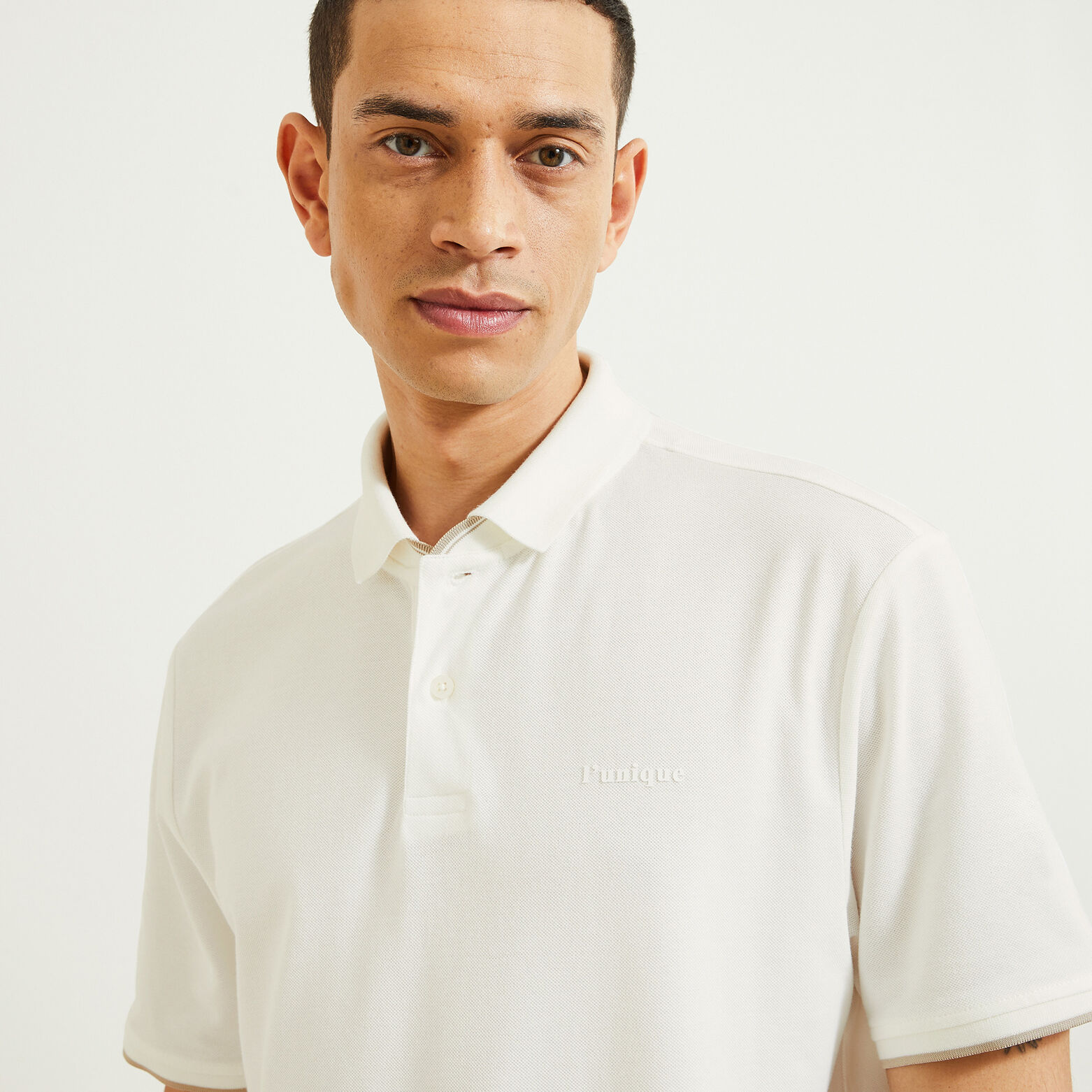 Polo manches courtes fantaisie poitrine double col - Blanc