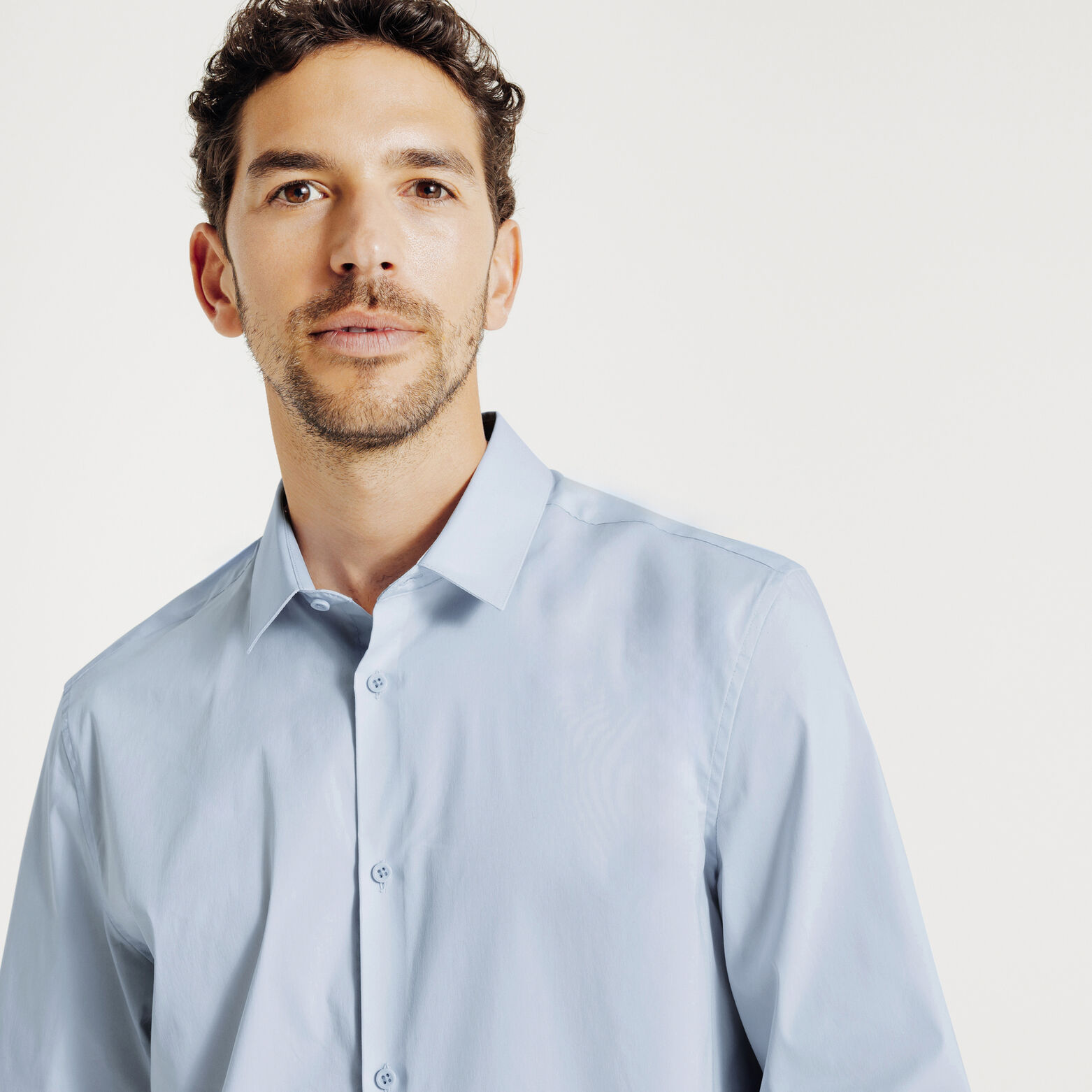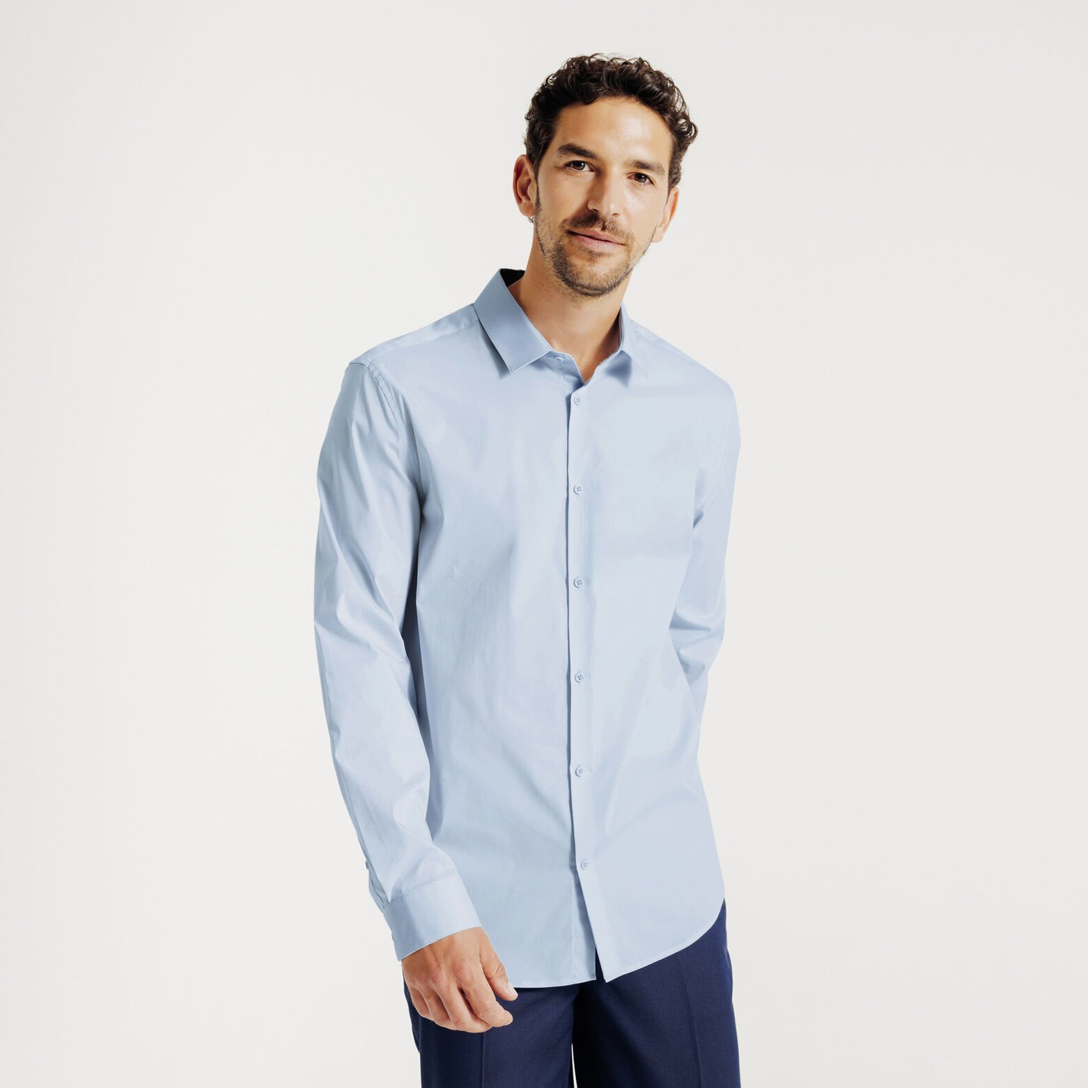 Cette chemise unie est une pièce moderne et casual, facile à porter en toutes circonstances. Elle est dotée d'élasthanne, assurant élasticité, confort et liberté de mouvement.