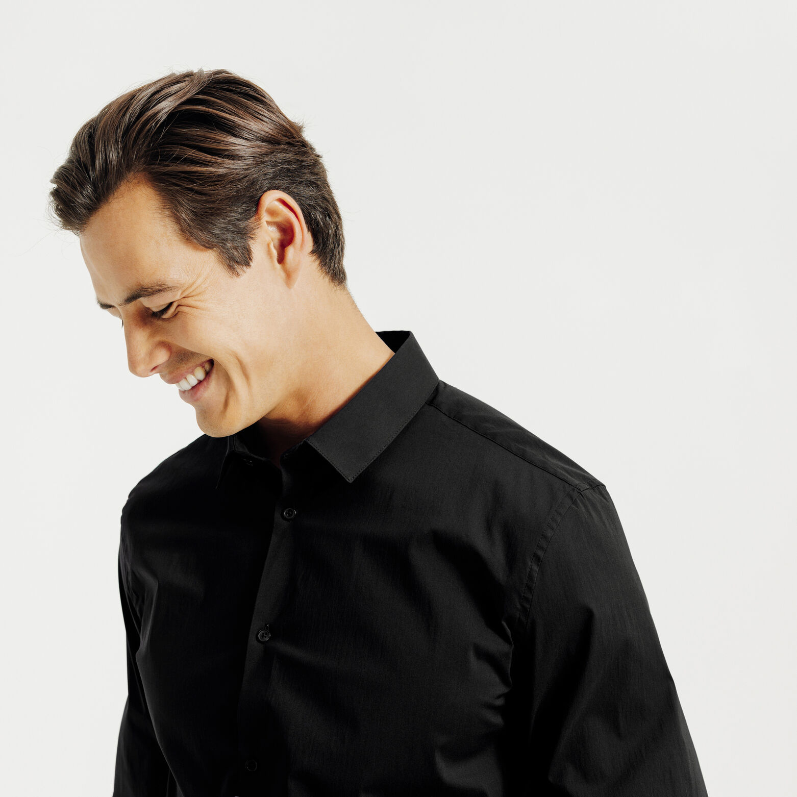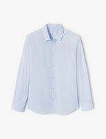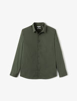 Cette chemise unie est une pièce moderne et casual, facile à porter en toutes circonstances. Elle est dotée d'élasthanne, assurant élasticité, confort et liberté de mouvement.