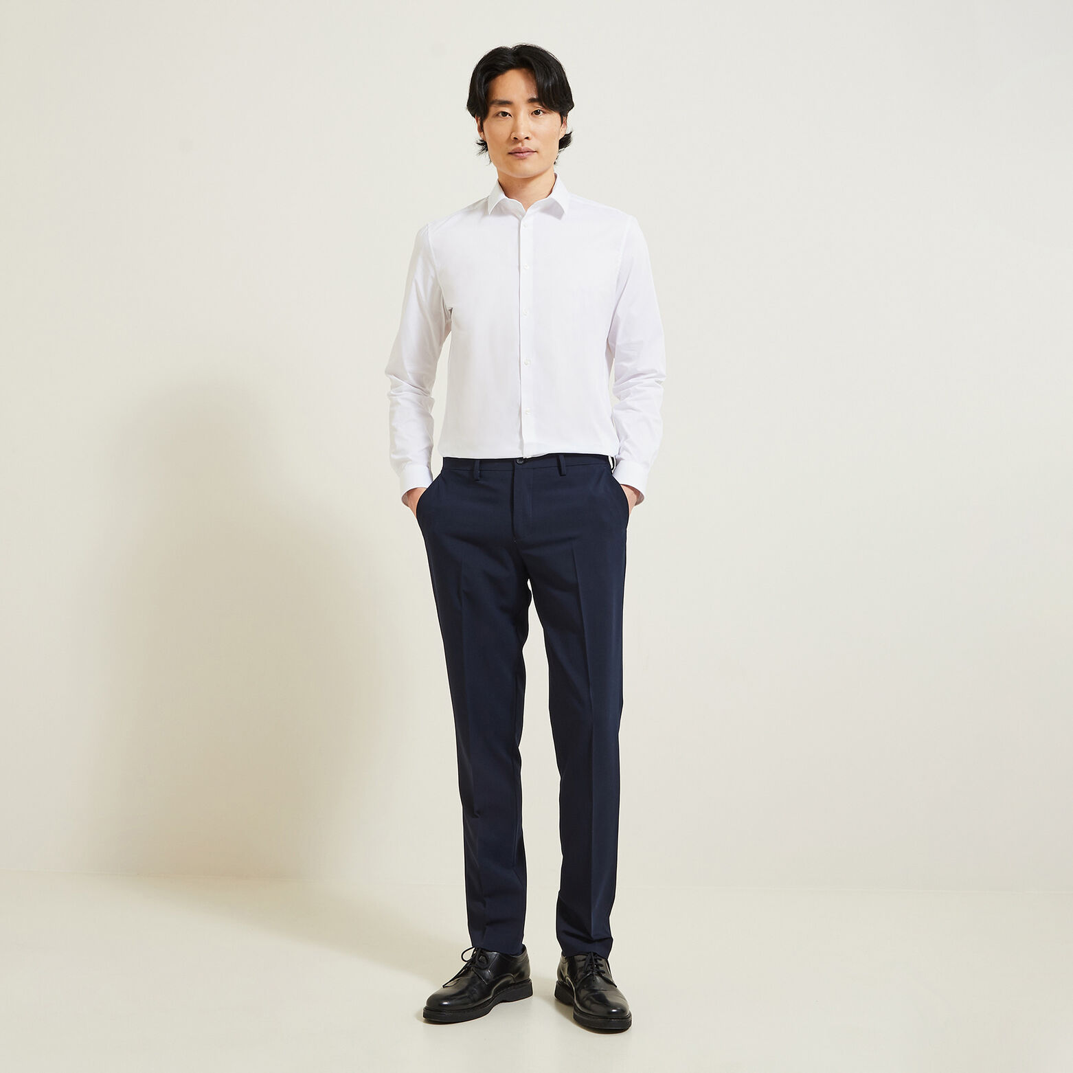 Chemise slim unie coton - Blanc