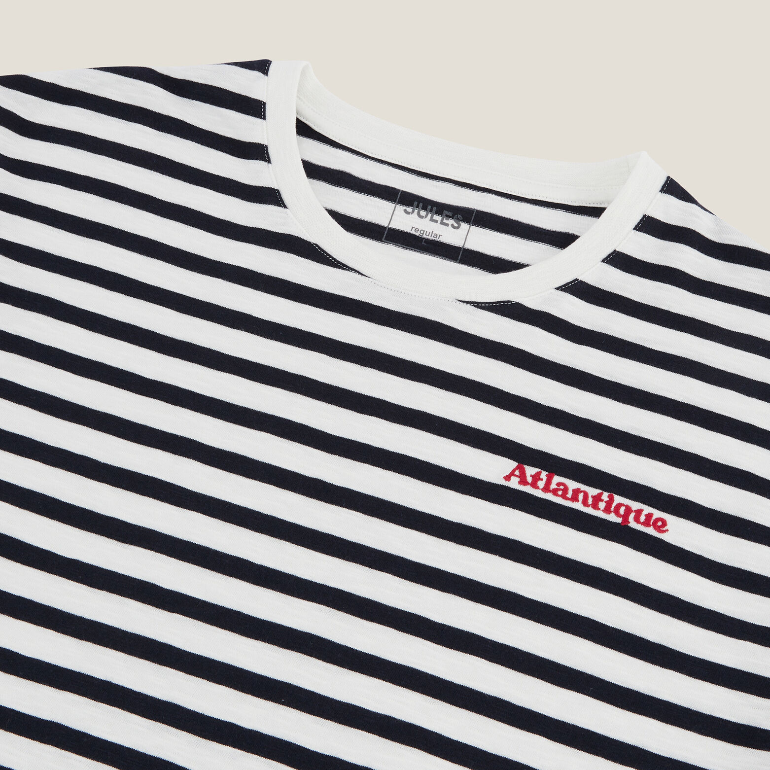 Ce t-shirt marinière brodé offre un porté cool et décontracté en toute occasion. Il est léger et s'associe aussi bien avec un jean qu'avec un bermuda.
